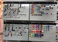 2) Пуговицы: большой выбор– пришивные и джинсовые: В наших магазинах все пуговицы представлены по цвету на стендах и в альбомах.