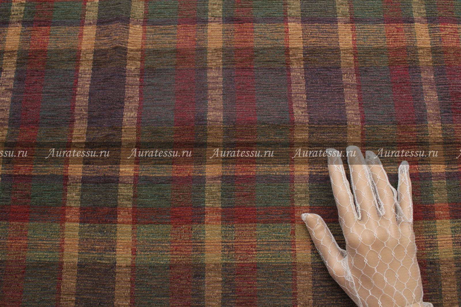 Мебельный трикотаж крупная клетка в сливово- бордовых, коричнево-зелёных тонах