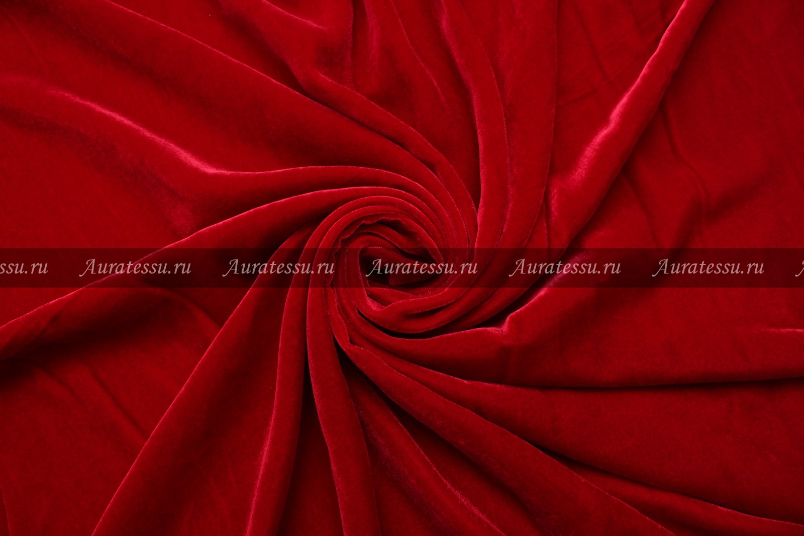 Средней  плотности 260г/пм, классический панбархат на натуральной шёлковой основе. Ткань насыщенного кроваво-красного  цвета с коротеньким ворсом. Ворс имеет чёткое направление и это необходимо учитывать при раскрое изделия.  Так же от направления ворса меняется интенсивность цвета. Сшитое против ворса изделие будет смотреться более выигрышно. Полотно нежное, пластичное, требует бережного ухода. Подходит для пошива нарядной одежды не узких силуэтов.