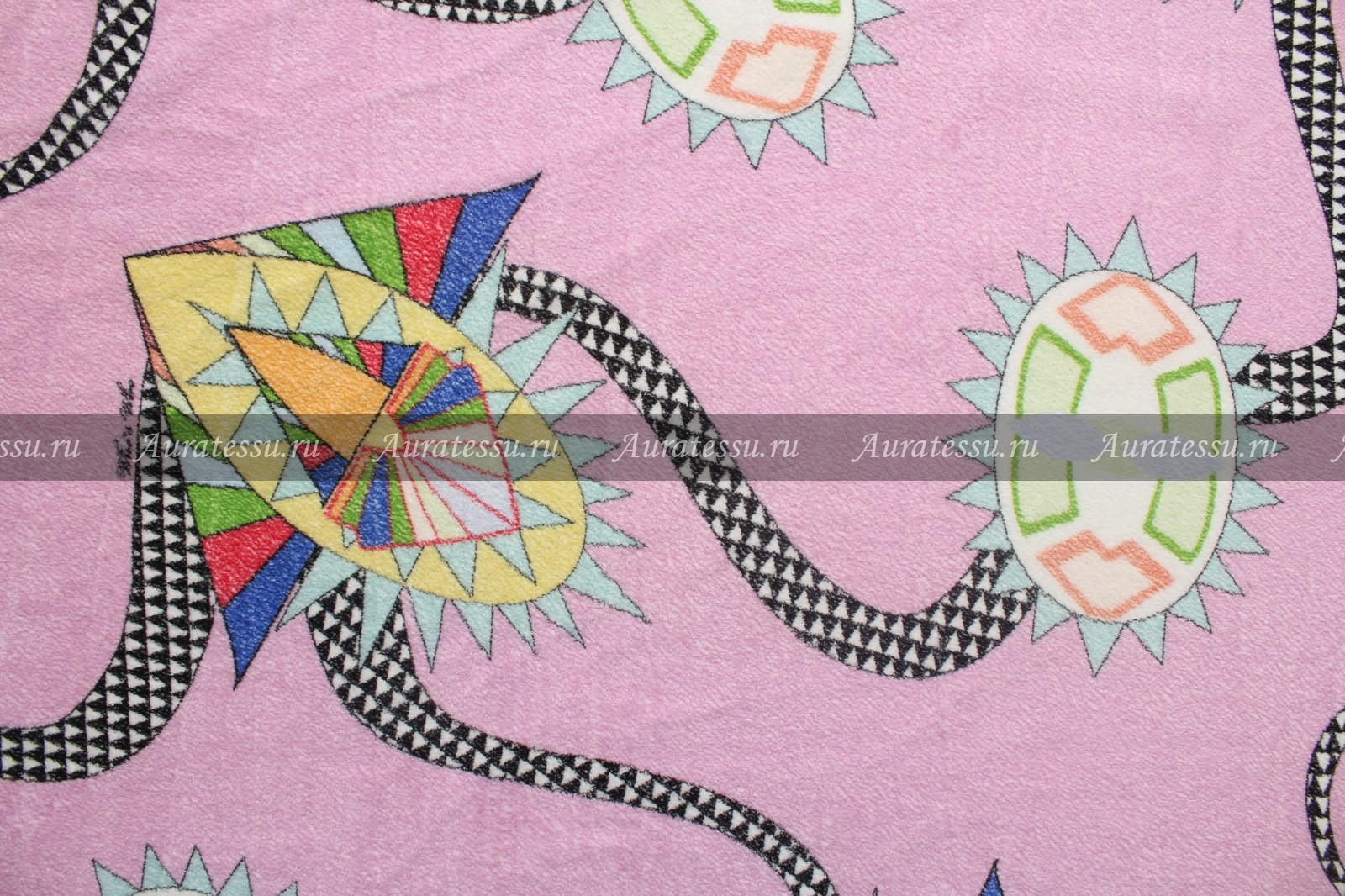 Велюр стрейч «воздушные змеи» на розовато-сиреневом фоне