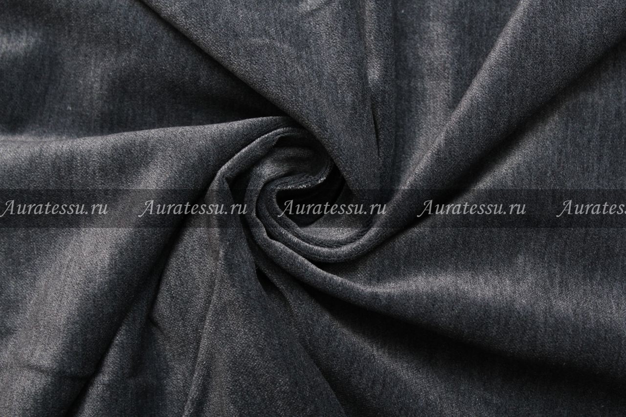 Мягкий пластичный бархат меланжевого серого цвета с густым невысоким ворсом. Поверхность бархата мягкая, приятная на ощупь. Ткань средней плотности, упругая. Цвет ворса меняет глубину и интенсивность оттенка в зависимости от угла зрения относительно направления ворса и освещенности. Ворс имеет направление, что следует учесть при расчете расхода ткани на изделие. Подходит для шитья жакетов, юбок, жилетов, платьев.
