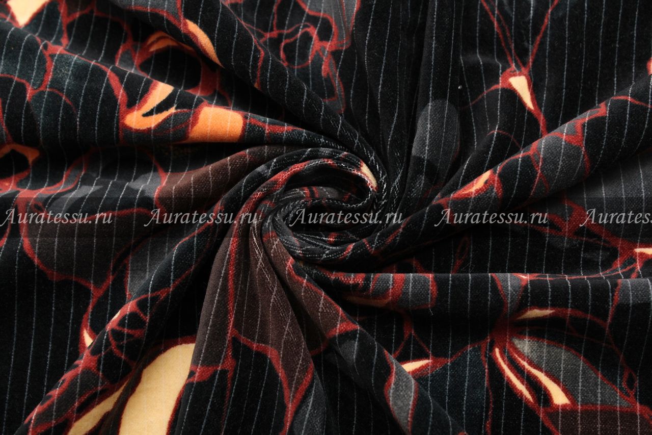 Дополнительная информация:Мягкий и пластичный бархат в тонкую узкую полоску серого цвета. Расстояние между полосами около 7 мм. Набивной рисунок в чёрных, серых, терракотовых, абрикосовых тонах. Узор напоминает витражную мозаику. Ткань средней плотности, упругая, держит форму. Подходит для пошива пиджаков и жакетов классических силуэтов, так же может использоваться для сценической одежды и интерьерных решений. Рекомендации по уходуБархат, велюр синтетический: Синтетический бархат, велюр в том числе и на трикотажной основе стирать просто и можно не гладить, если достаточно места, чтобы высушить его в расправленном виде. Можно стирать в машинке вывернув наизнанку с обычным стиральным порошком для цветного белья при 30-40°С без отжима или с легким отжимом. Если потребуется погладить, то лучше на весу утюгом с вертикальным отпаривателем или гладить на махровом полотенце, сложенном в 2-3 раза.