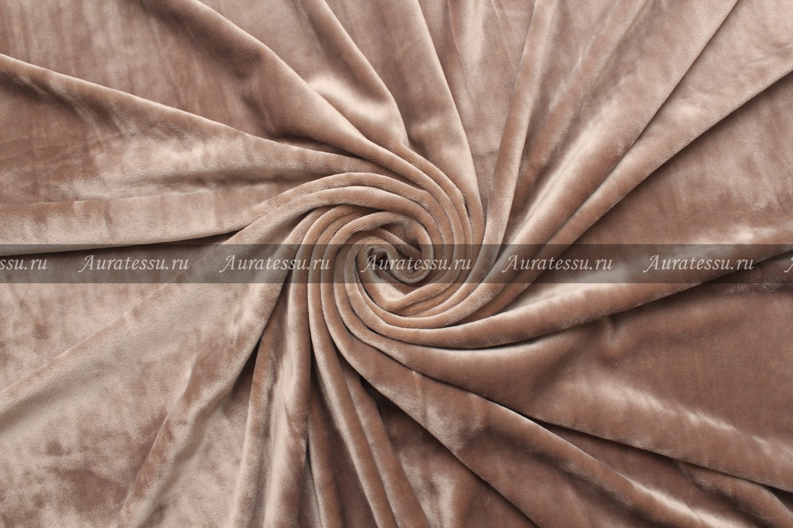 Дополнительная информация:Очень мягкий 460г/мп, крайне приятный на ощупь бархат на трикотажной основе. Ворс коротенький, приглаженный, имеет направление. Полотно эластичное, светлого серовато- бежевого цвета. Полотно средней плотности, пластичное, мало электризуется. Подходит для пошива нарядной, повседневной, спортивной одежды разнообразных силуэтов. Рекомендации по уходуБархат, велюр синтетический: Синтетический бархат, велюр в том числе и на трикотажной основе стирать просто и можно не гладить, если достаточно места, чтобы высушить его в расправленном виде. Можно стирать в машинке вывернув наизнанку с обычным стиральным порошком для цветного белья при 30-40°С без отжима или с легким отжимом. Если потребуется погладить, то лучше на весу утюгом с вертикальным отпаривателем или гладить на махровом полотенце, сложенном в 2-3 раза.