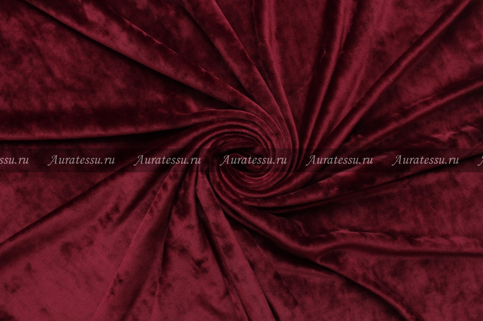Дополнительная информация:Очень мягкий 460г/мп, крайне приятный на ощупь бархат на трикотажной основе. Ворс коротенький, приглаженный, имеет направление. Полотно эластичное, вишнёвого цвета с лёгким терракотовым оттенком. Полотно средней плотности, пластичное, мало электризуется. Подходит для пошива нарядной, повседневной, спортивной одежды разнообразных силуэтов. Рекомендации по уходуБархат, велюр синтетический: Синтетический бархат, велюр в том числе и на трикотажной основе стирать просто и можно не гладить, если достаточно места, чтобы высушить его в расправленном виде. Можно стирать в машинке вывернув наизнанку с обычным стиральным порошком для цветного белья при 30-40°С без отжима или с легким отжимом. Если потребуется погладить, то лучше на весу утюгом с вертикальным отпаривателем или гладить на махровом полотенце, сложенном в 2-3 раза.