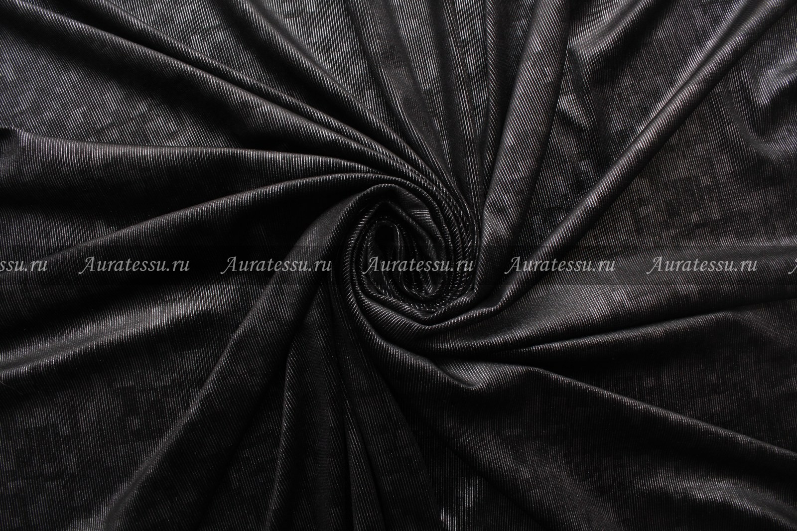- Бархат перламутр стрейч чёрно-серебристый в рубчик