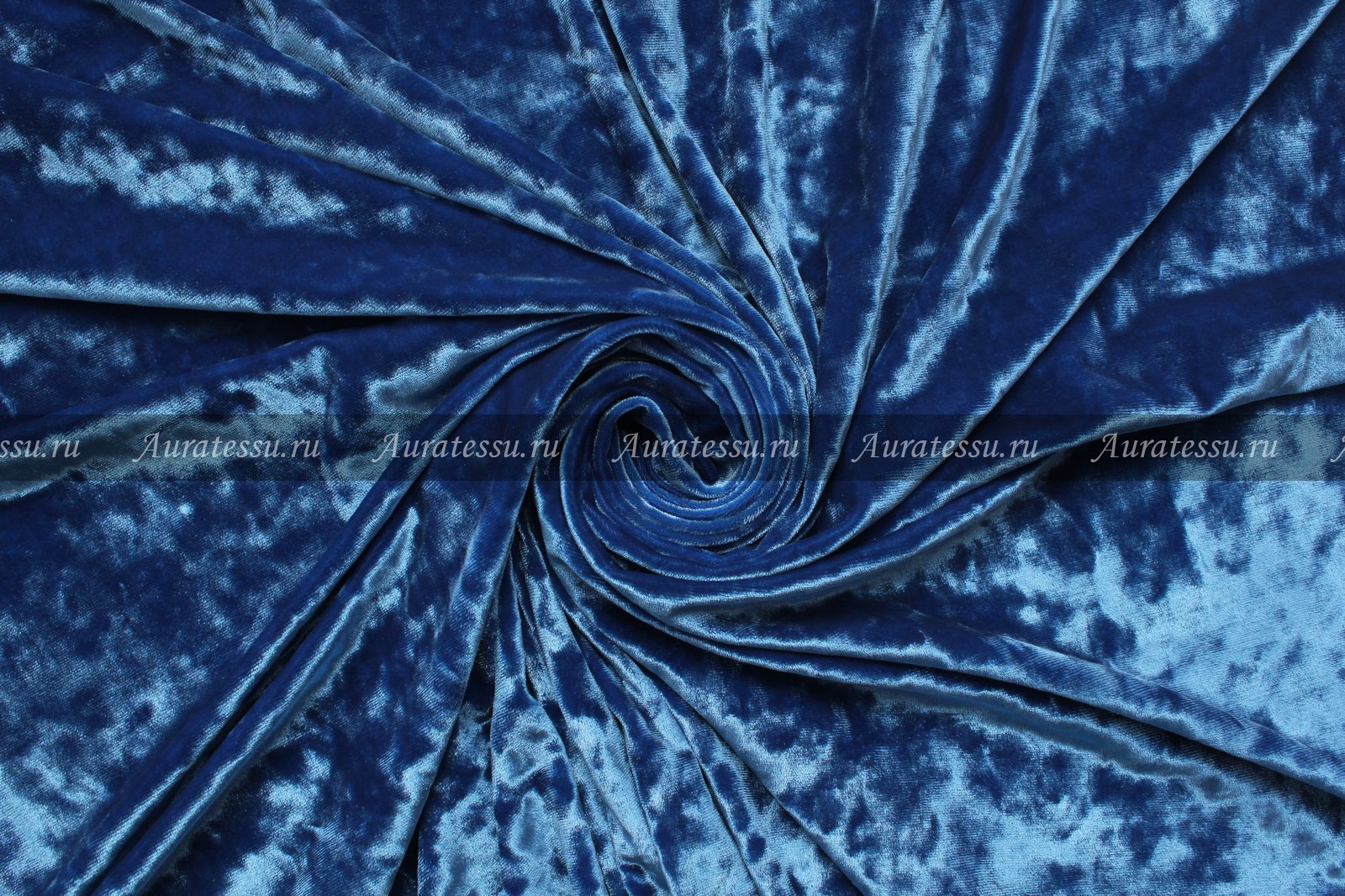 Дополнительная информация:Синего цвета эластичный бархат средней плотности, с мягким разнонаправленным ворсом, напоминающий лёгкий креш. Рисунок креша как бы мраморный. Полотно очень хорошо тянется, не деформируясь, может использоваться для узких, облегающих моделей. По внешнему виду напоминает шёлковый панбархат. Полотно приятно переливается. Подходит для шитья нарядной одежды. Рекомендации по уходуБархат, велюр синтетический: Синтетический бархат, велюр в том числе и на трикотажной основе стирать просто и можно не гладить, если достаточно места, чтобы высушить его в расправленном виде. Можно стирать в машинке вывернув наизнанку с обычным стиральным порошком для цветного белья при 30-40°С без отжима или с легким отжимом. Если потребуется погладить, то лучше на весу утюгом с вертикальным отпаривателем или гладить на махровом полотенце, сложенном в 2-3 раза.