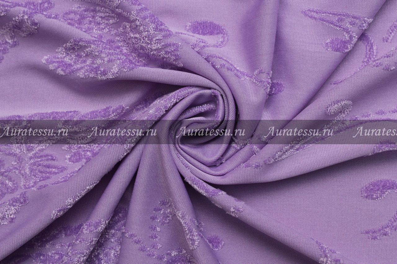 Дополнительная информация:Трикотаж средней плотности нежного сиреневого цвета. По лицевой стороне ворсовой рисунок на расстоянии 17 см. от кромки в виде восточных огурцов. Высота узора около 30 см. Далее мелкий восточный узор по всему полотну. Основа трикотажа матовая, не прозрачная. Полотно слегка тянется только за счет трикотажного переплетения, поэтому его можно кроить как вдоль так и поперек, принимая во внимание только расположение рисунка. Рекомендации по уходуБархат, велюр синтетический: Синтетический бархат, велюр в том числе и на трикотажной основе стирать просто и можно не гладить, если достаточно места, чтобы высушить его в расправленном виде. Можно стирать в машинке вывернув наизнанку с обычным стиральным порошком для цветного белья при 30-40°С без отжима или с легким отжимом. Если потребуется погладить, то лучше на весу утюгом с вертикальным отпаривателем или гладить на махровом полотенце, сложенном в 2-3 раза.