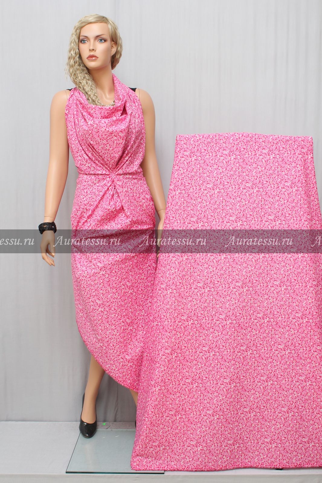 24-05159 Цена 240 руб/метр - Хлопок ситец ш77 100хл мелк малин-роз цветоч с зел лист н/Бел