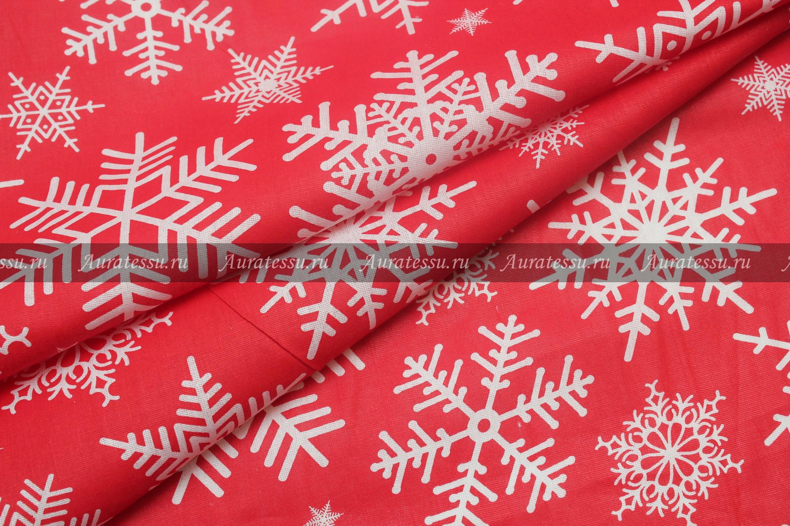 24-01801 Цена 390 руб/метр - Хлопок бязь Снежинка 100%хлоп ш146 190г/мп на красно фоне