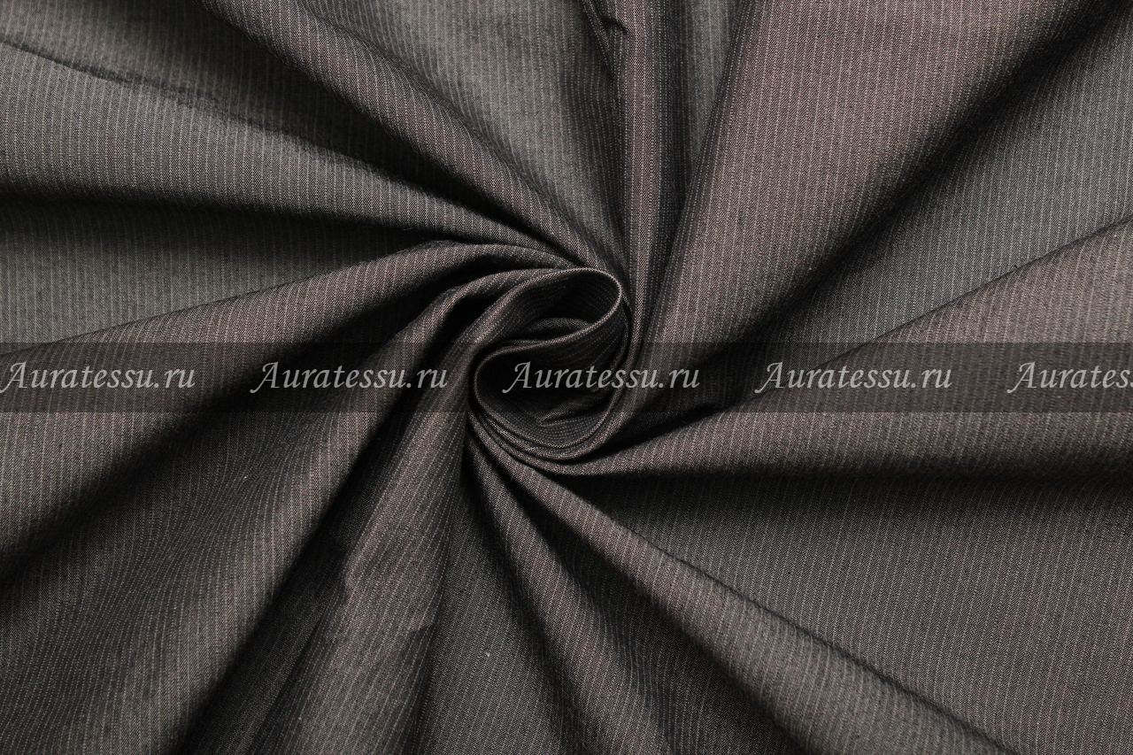 Средней плотности, достаточно тонкий костюмный хлопок тёмно-серого слегка меланжевого цвета с тонкую, частую, не явную продольную полоску. Ткань плотно соткана, двухсторонняя с лёгким шелковистым глянцем. Полотно "сухое" упругое, отлично держит форму. Подходит для пошива костюмно-плательной одежды весенне-летнего ассортимента.