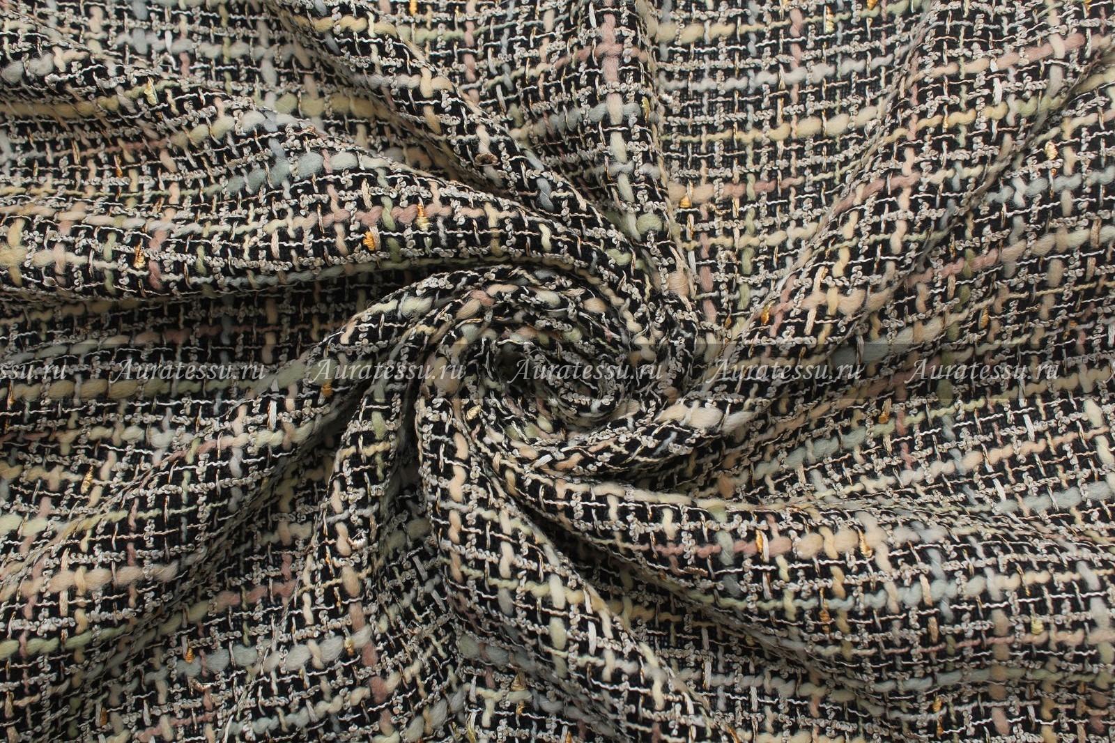Костюмная ткань Chanel бежево-серые нити на чёрной основе