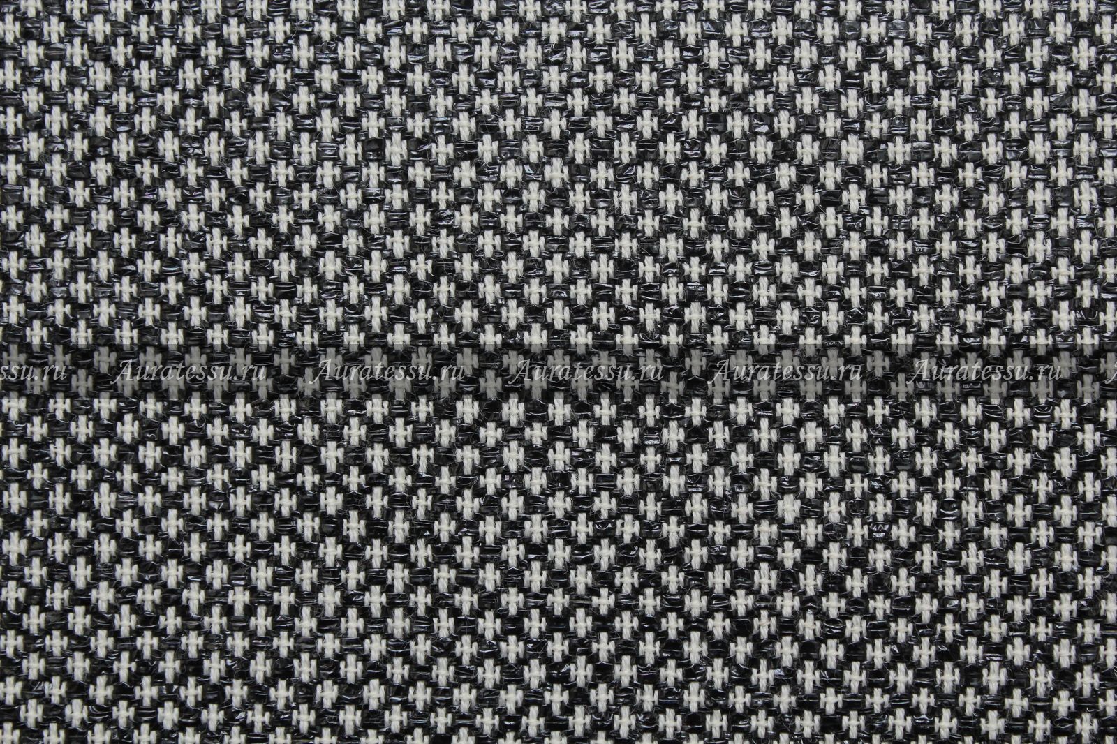 Ткань костюмная Chanel чёрно-белый диагональный узор с чёрным люрексом