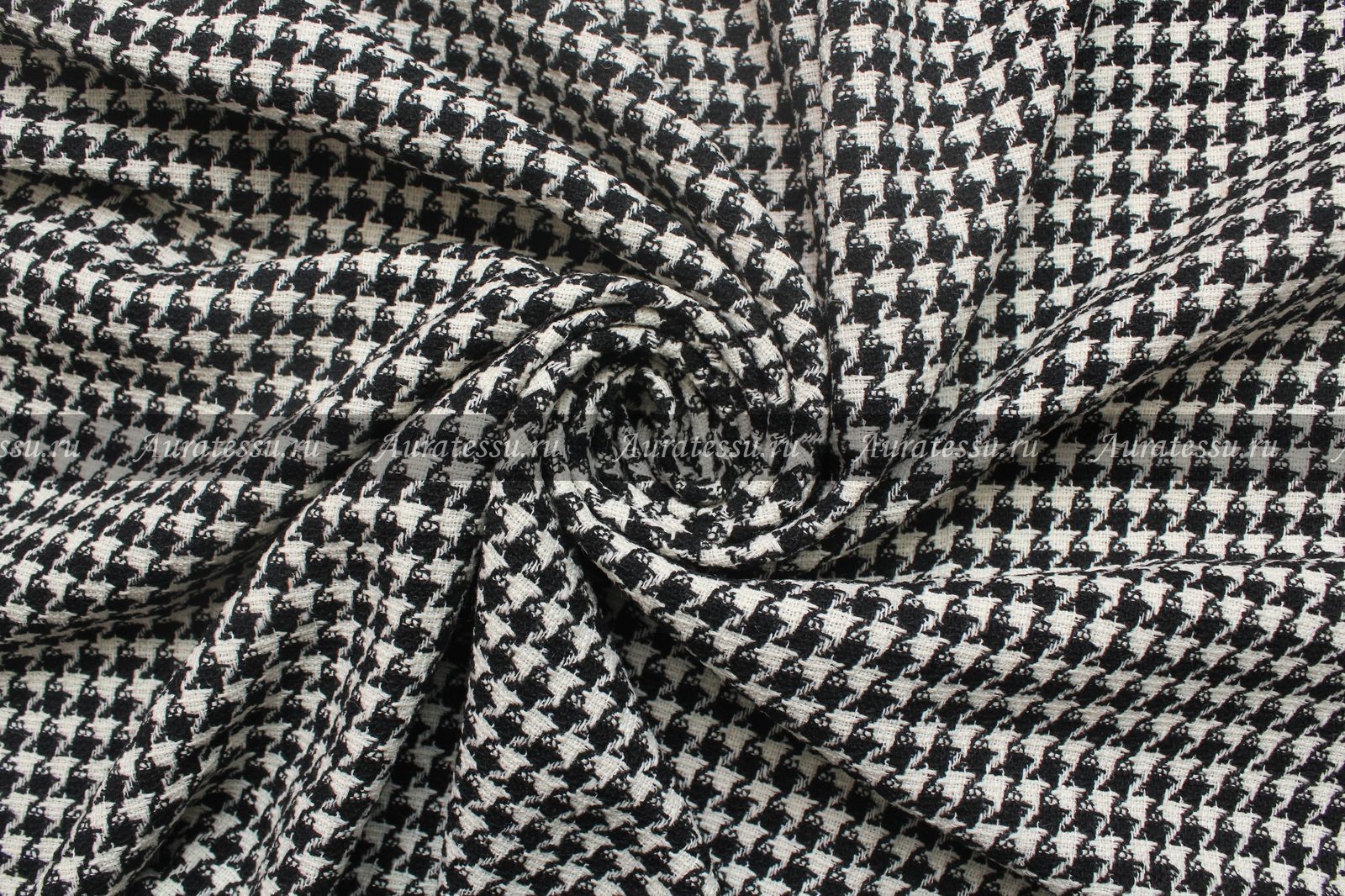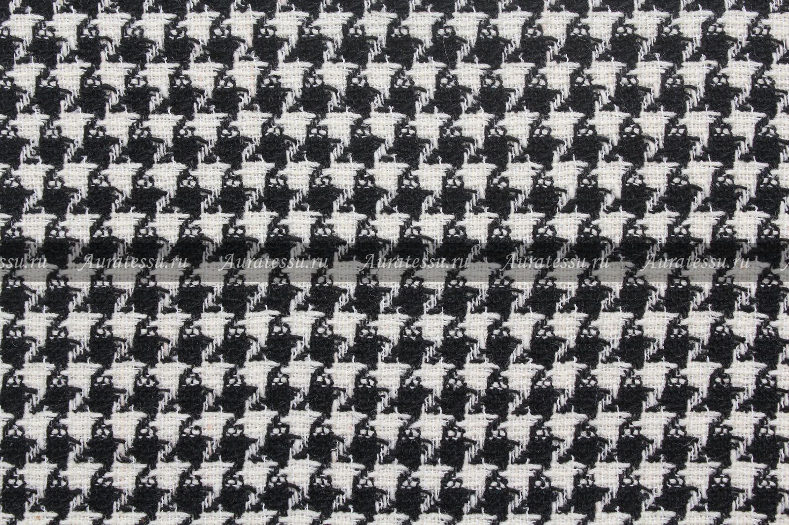 Ткань костюмная Chanel чёрно-кремовая гусиная лапка с начёсом