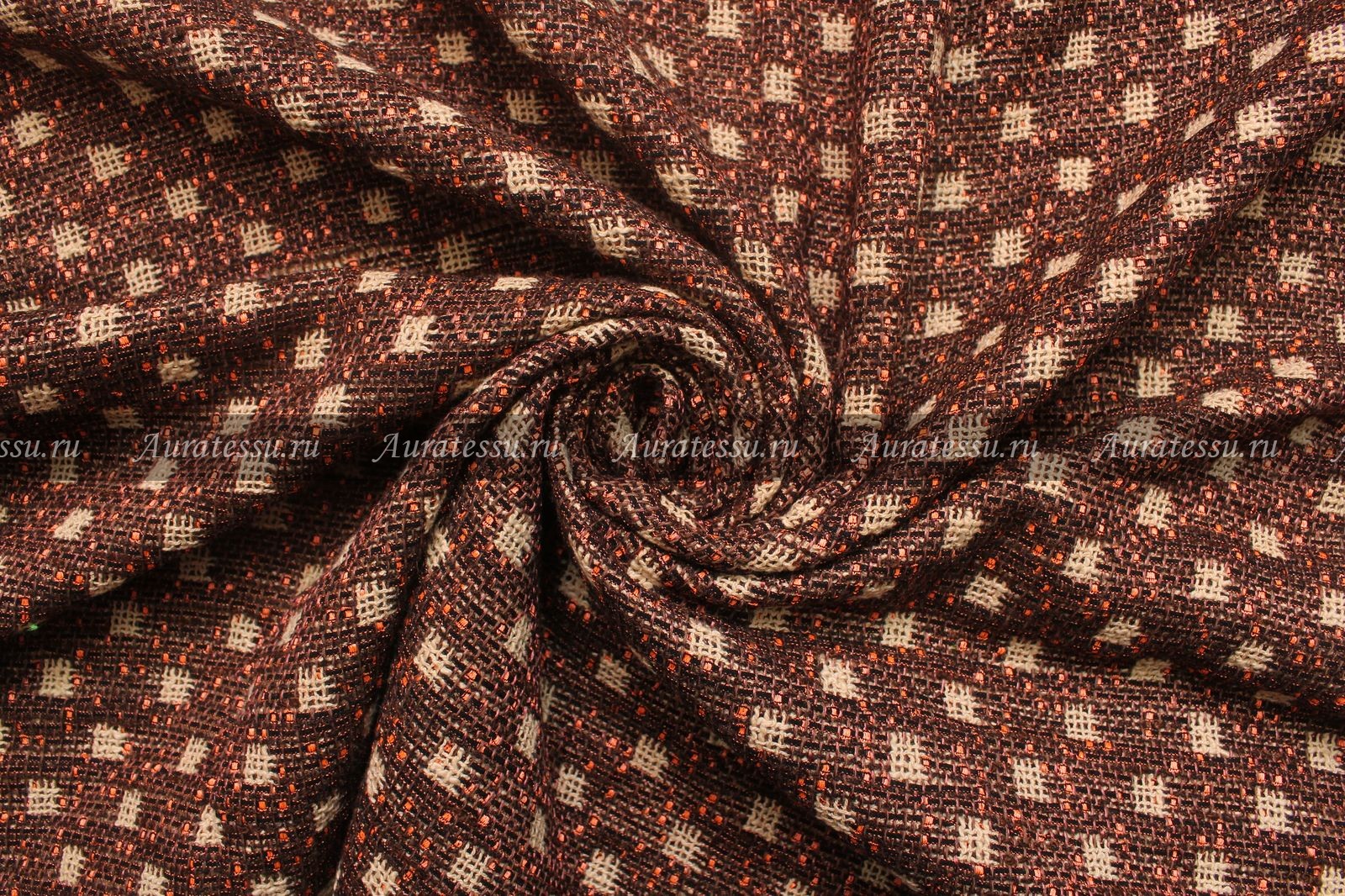 Ткань костюмная Chanel двухслойная коричнево-бежевая с рыжим