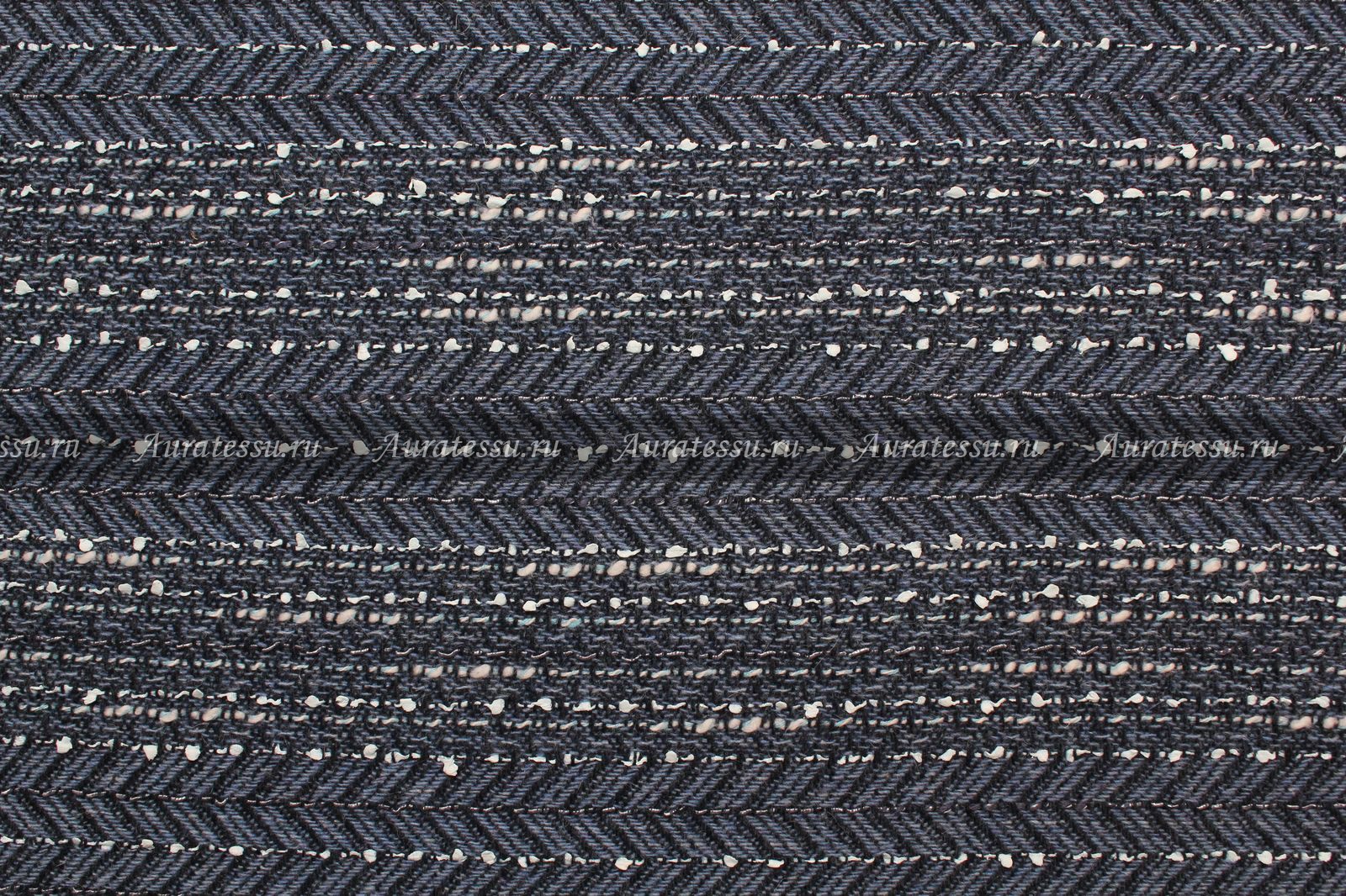 Ткань костюмно-пальтовая Chanel сине-сиреневая в ёлочку