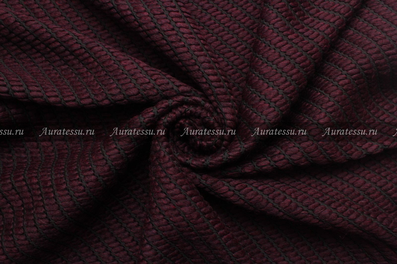 Костюмно-пальтовая ткань Chanel тёмно-сливовая диагональ на чёрном фоне