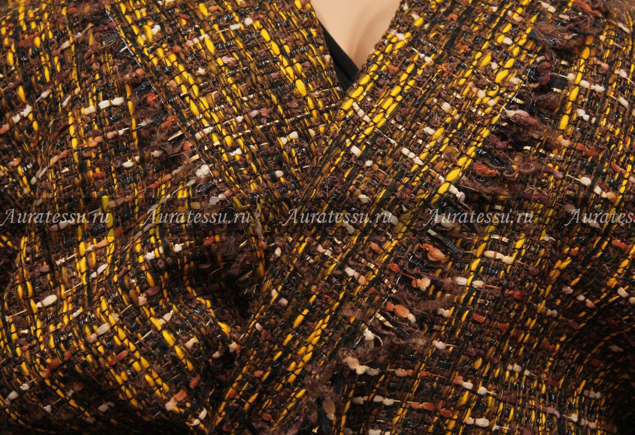 Ткань костюмная с люрексом Chanel желто-коричневая