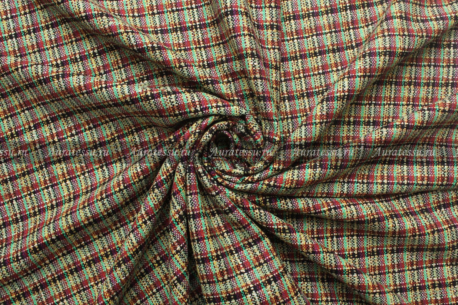 Шёлк Chanel под твид с люрексом терракотово-малахитовое