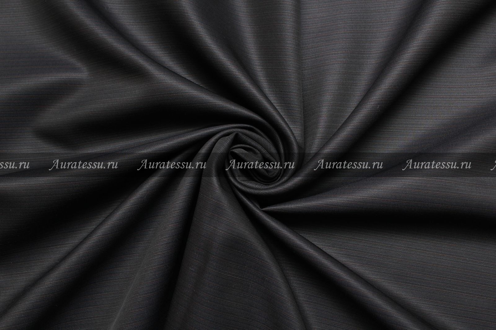 Костюмный жаккард средней плотности (ближе к тонкому) графитово-чёрного цвета. Лицевая сторона ткани немного шлифованная, гладкая, шелковистая, рельефная. На ткани рисунок поперечной тонкой фактурной полоски. Полотно упругое, отлично держит форму. Идеально подходит для пошива деловой костюмной одежды прямых, классических силуэтов.