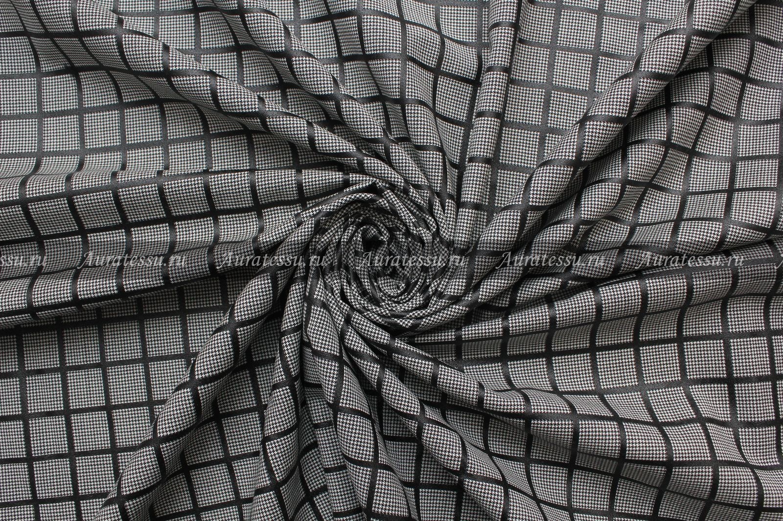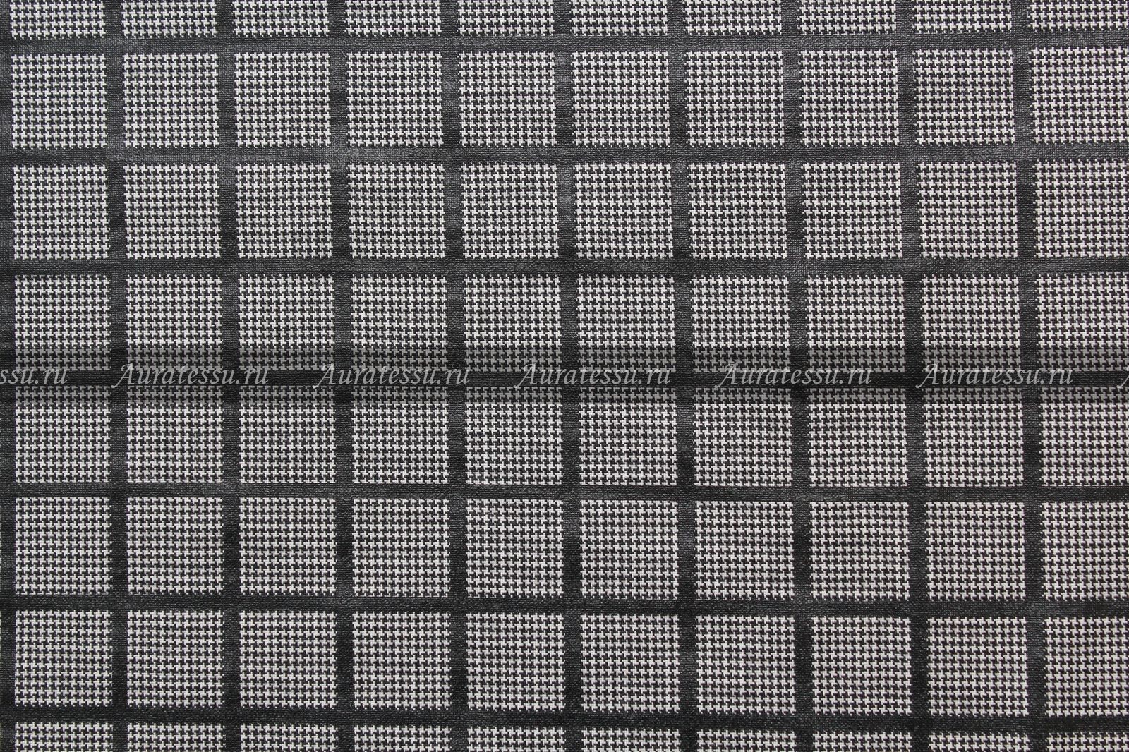 Ткань костюмная стрейч M.Kors мелкий узор Pied-de-Poule чёрно-белая с чёрной клеткой