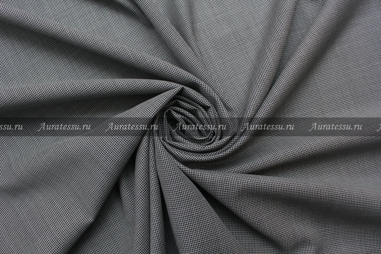 Средней плотности шлифованная костюмная ткань с мелким клетчатым узором. По лицевой стороне очень мелкий рисунок серо-белой клеточки на чёрном фоне. Размер клетки 1x1 мм. Полотно матовое, держит форму. Подходит для пошива разнообразной костюмно-плательной одежды.