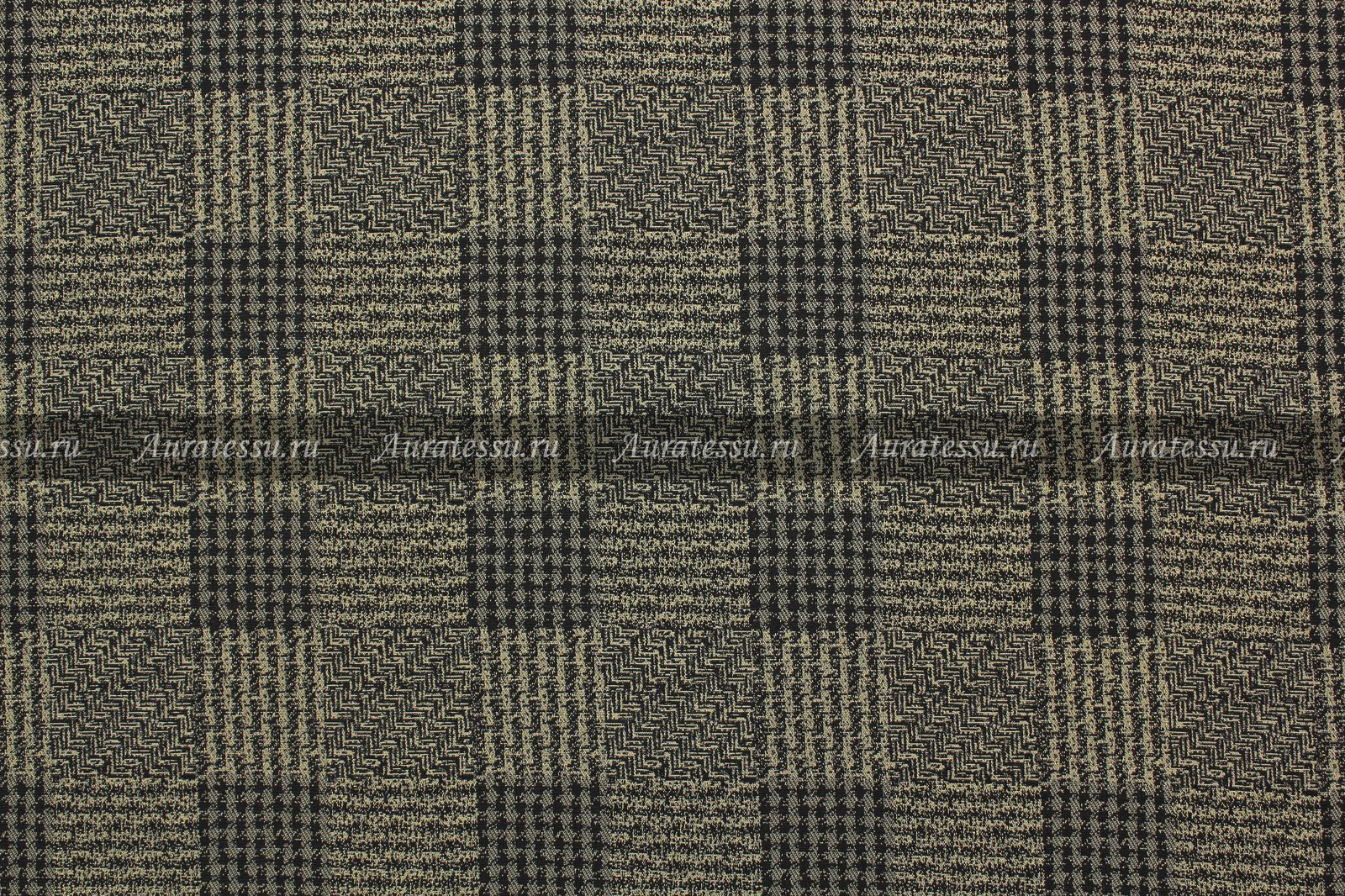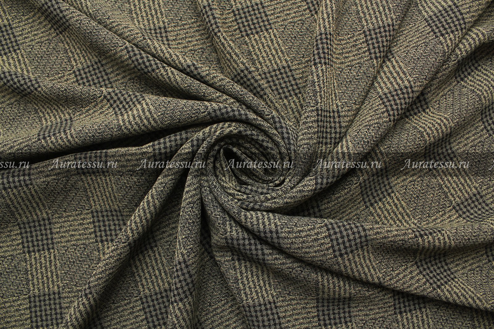 Креп костюмно-плательный, чёрно-оливковая клетка