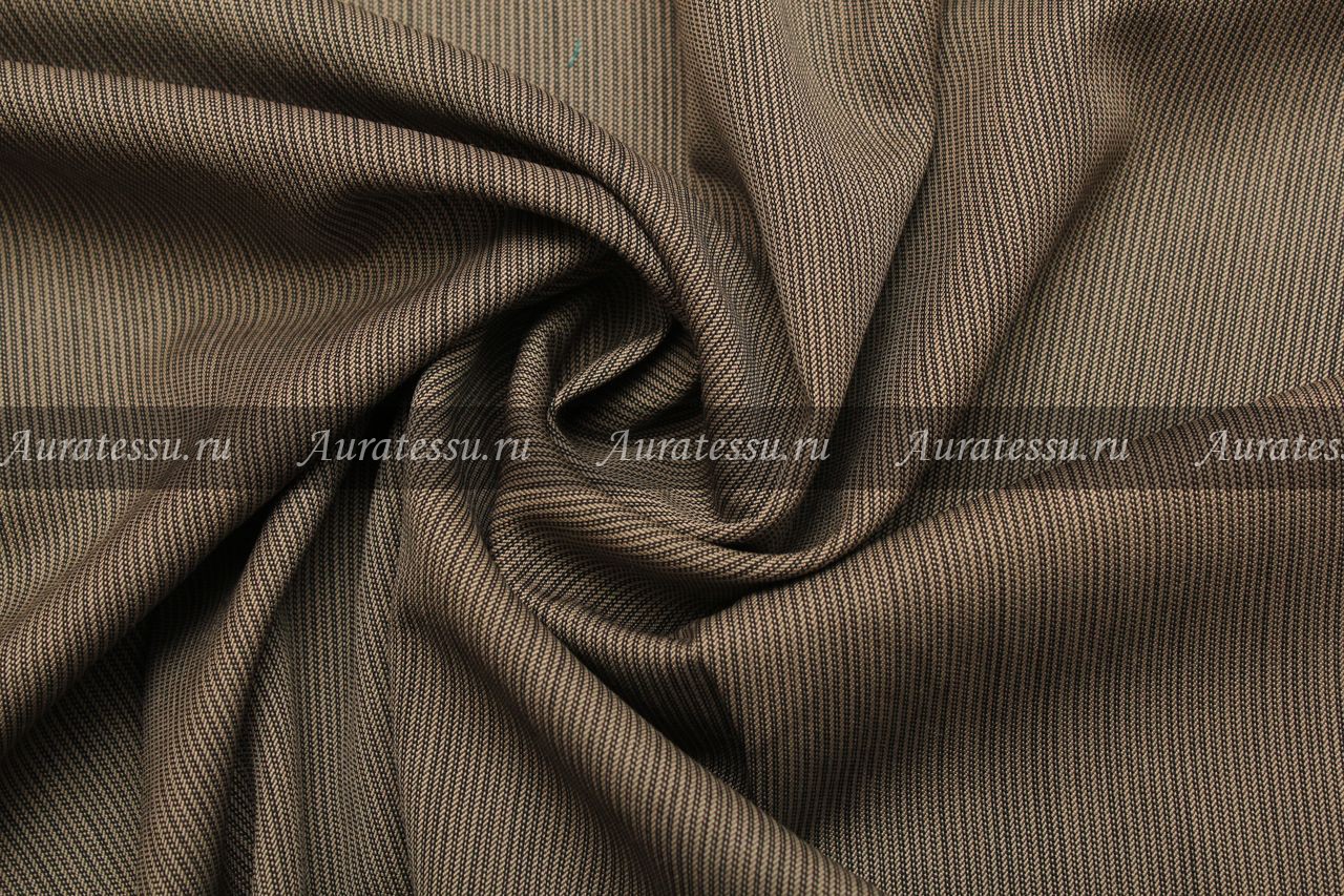 Ткань костюмная чёрно-табачная в мелкую жаккардовую полоску