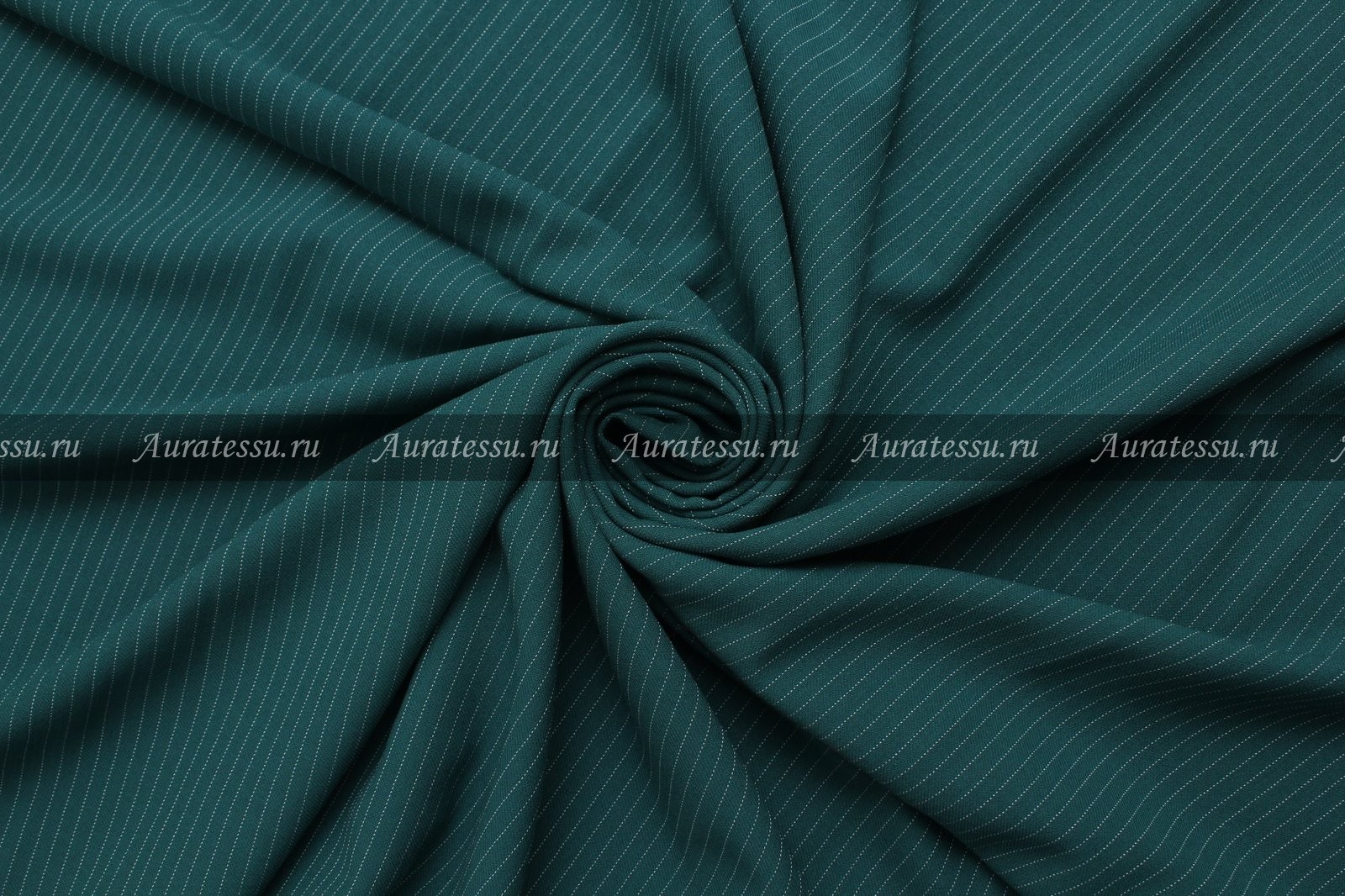 Шерсть костюмная стрейч изумрудно зелёная в поперечную полоску