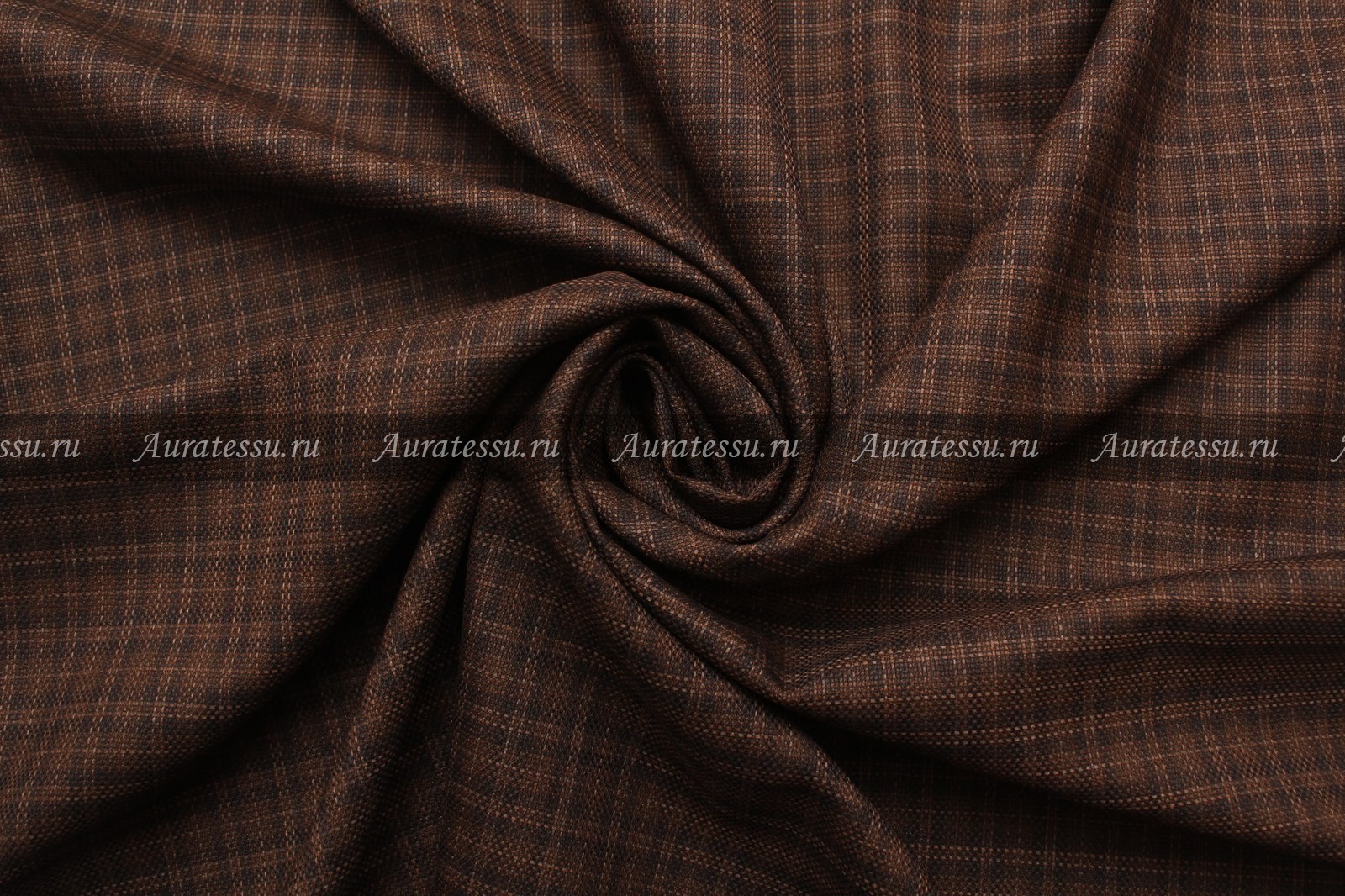 Шлифованная костюмная ткань средней плотности в коричнево-бежевой гамме. Плетение ткани из крупных кручёных нитей. Рисунок клетки не чёткий, штрихами и полутонами. Подходит для пошива плательной и костюмной одежды, отлично будет выглядеть в крое по косой.