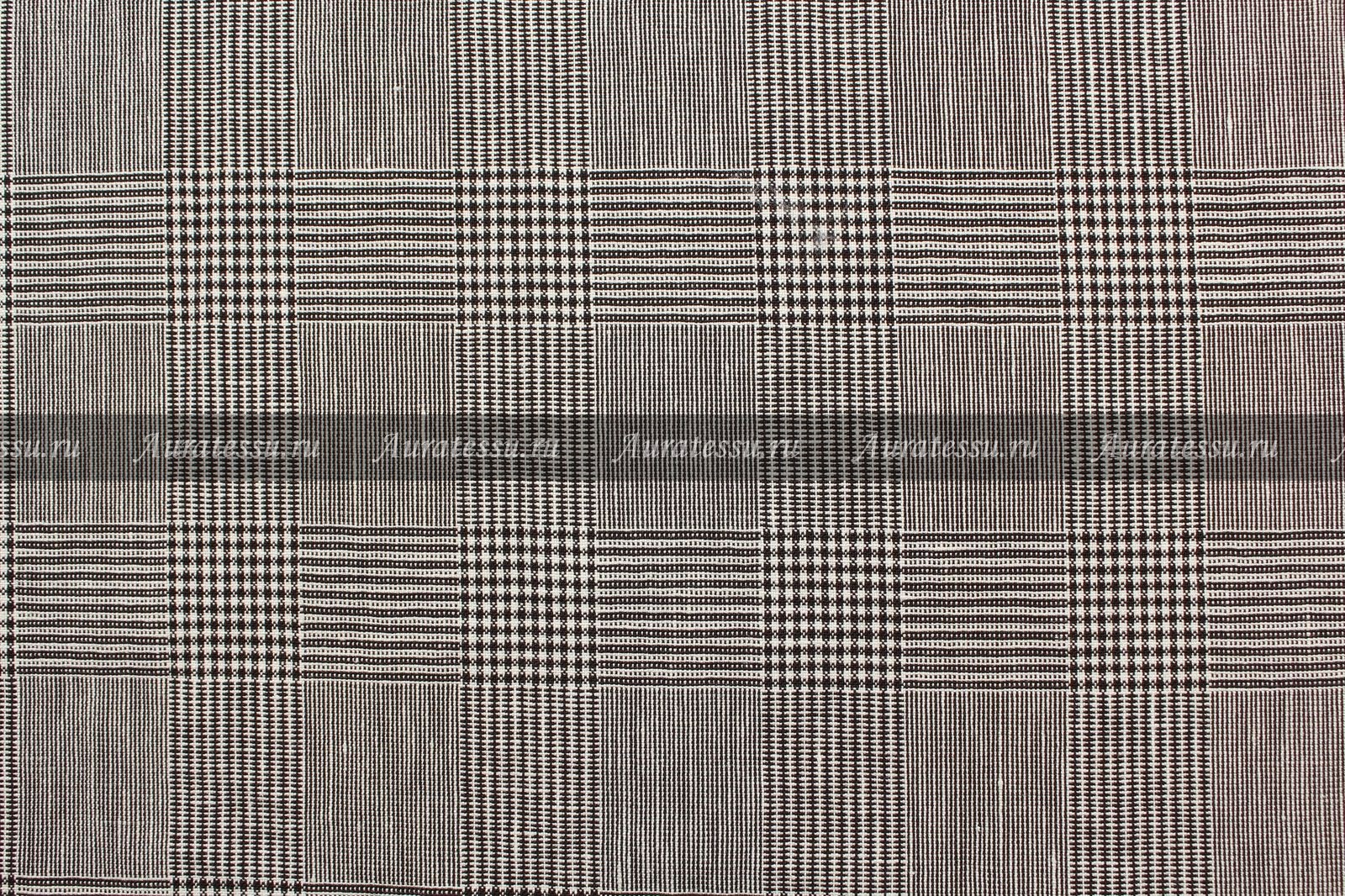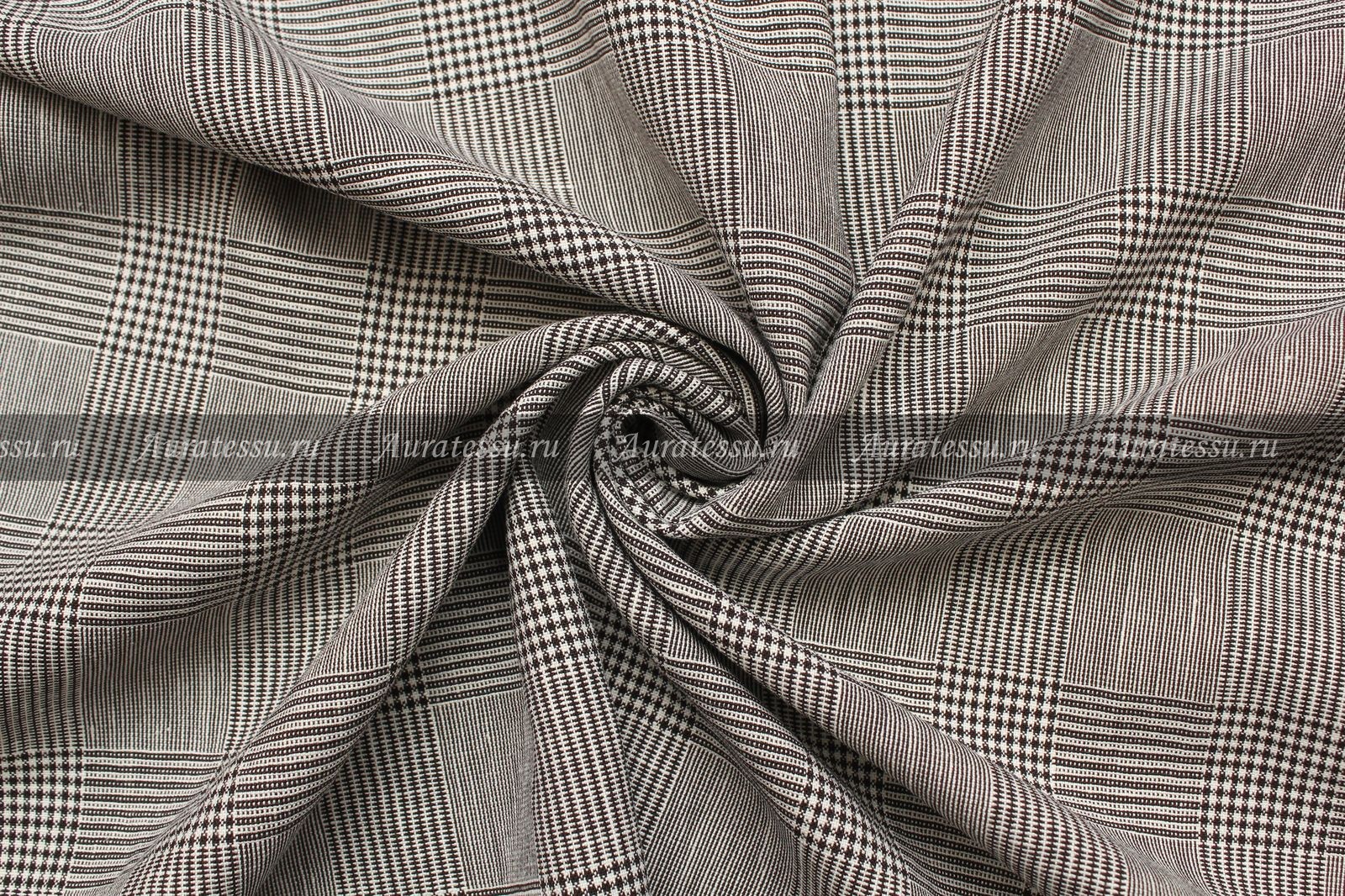 Полушерстяная костюмная ткань средней плотности с добавлением эластана и натуральных хлопковых и вискозных волокон. Цветовая гамма в коричневых и молочных тонах. Рисунок в клетку. Ширина полос пересекающихся друг с другом 33 и 29 мм. соответственно. Полотно упругое, держит форму. Подходит для пошива весеннее-летних костюмов мужского и женского ассортимента, разнообразных моделей и силуэтов.