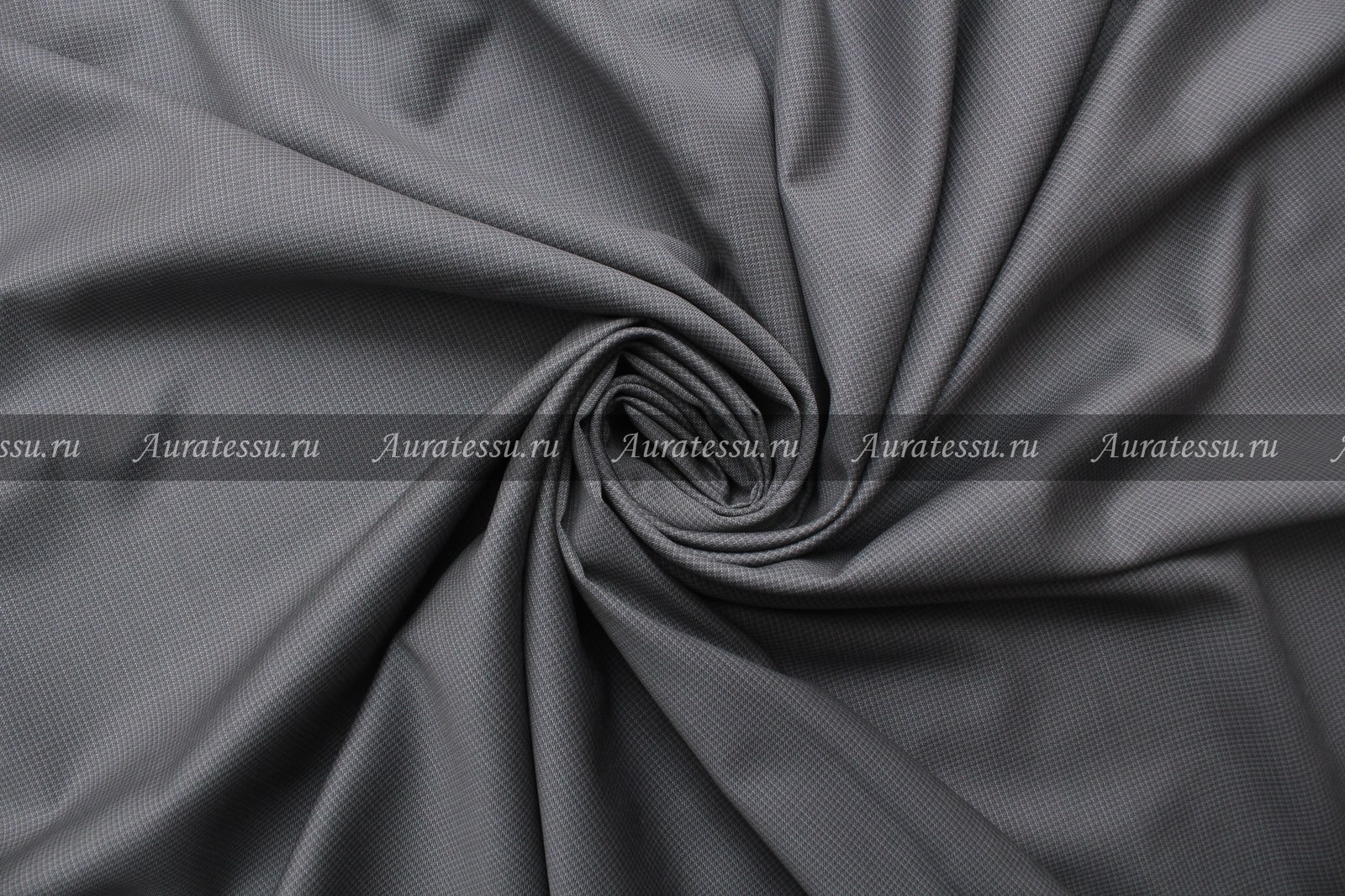 Тонкая костюмная шерсть в серых тонах. На ткани очень мелкий рисунок в клеточку. Полотно гладкое, шлифованное, без блеска. Подходит для пошива костюмной одежды классических силуэтов.