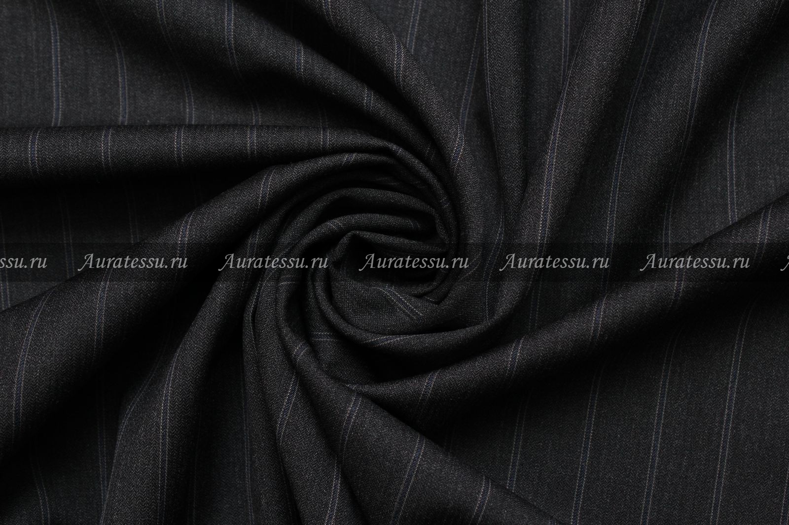 Ткань костюмная Marlane тёмно-серая в мелкую синюю полоску