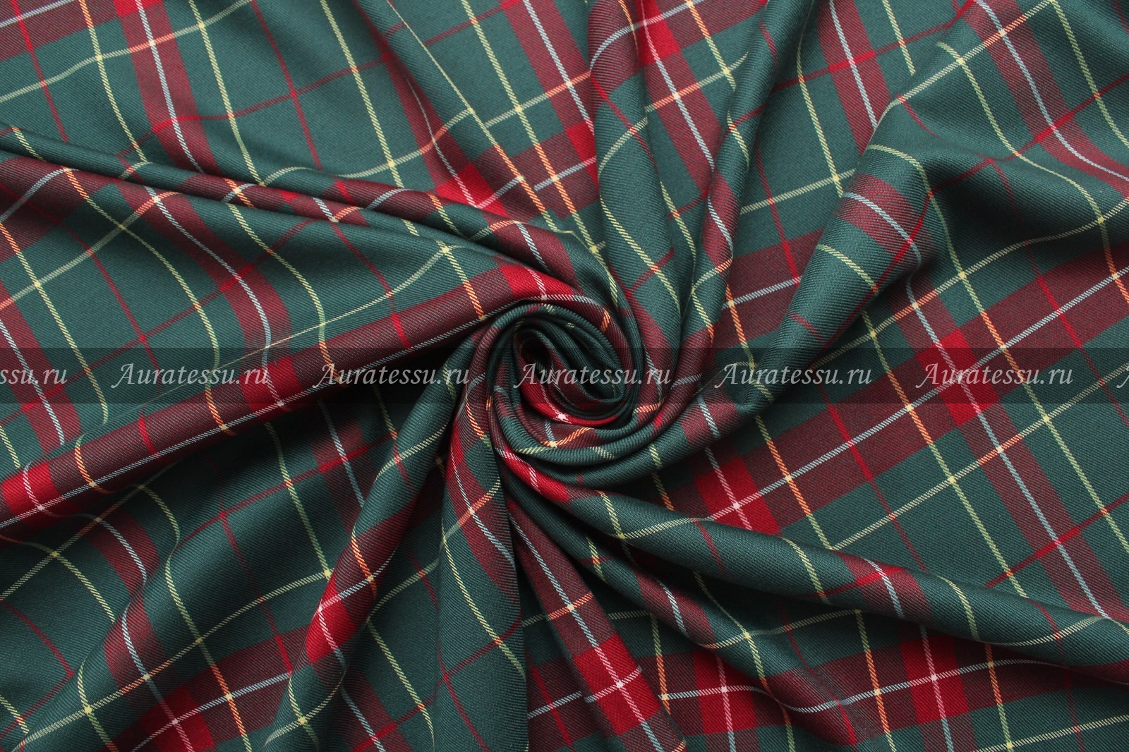 Средней плотности рубашечная ткань с рисунком в клетку. Цветовая гамма в насыщенном зелёном, сочном вишнёвом цвете с жёлтой и белой тонкой клеткой-полоской.  Полотно пластичное, эластичное, диагонального переплетения. Подходит для пошива рубашечной, плательной одежды разнообразных силуэтов.