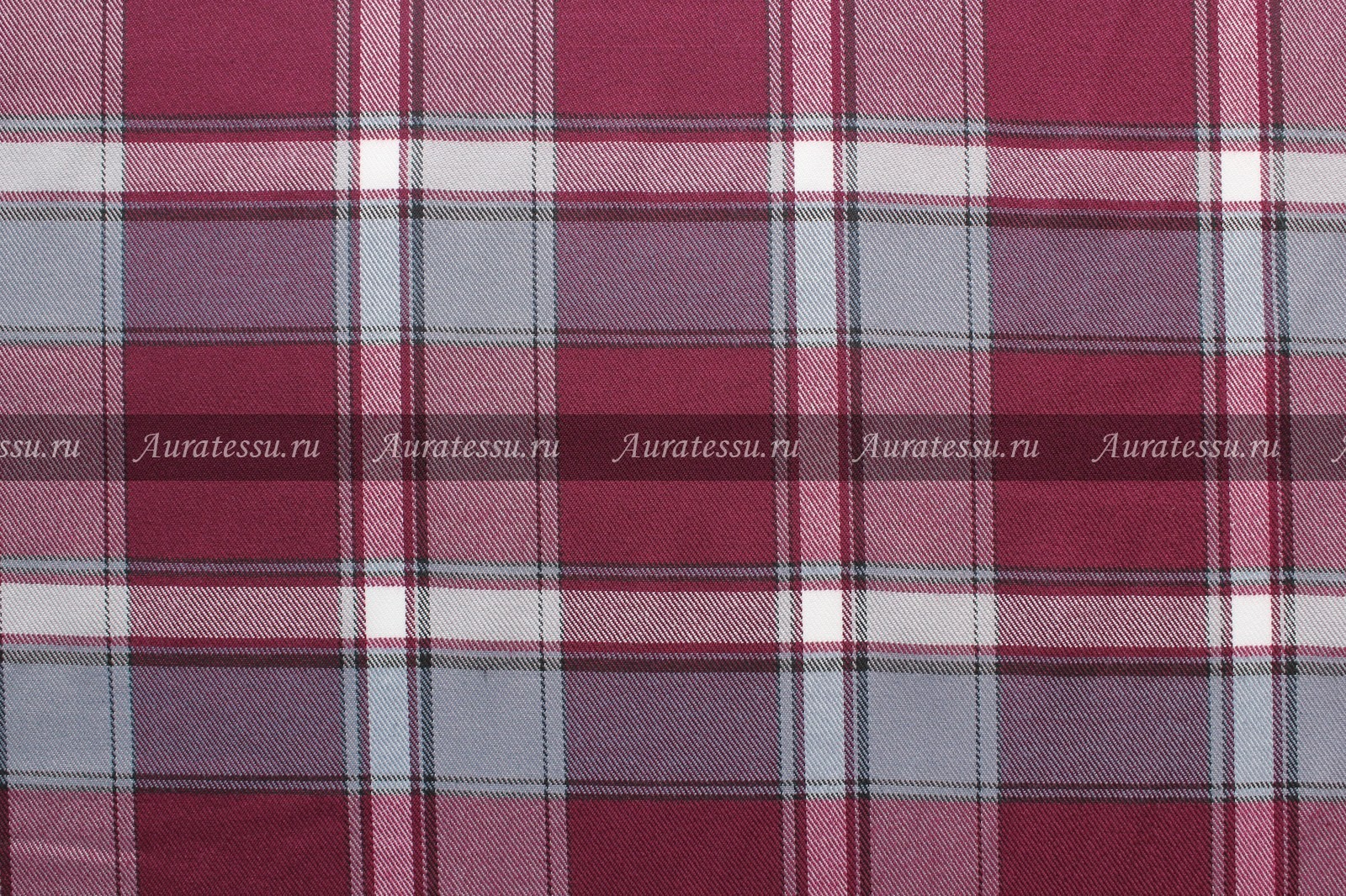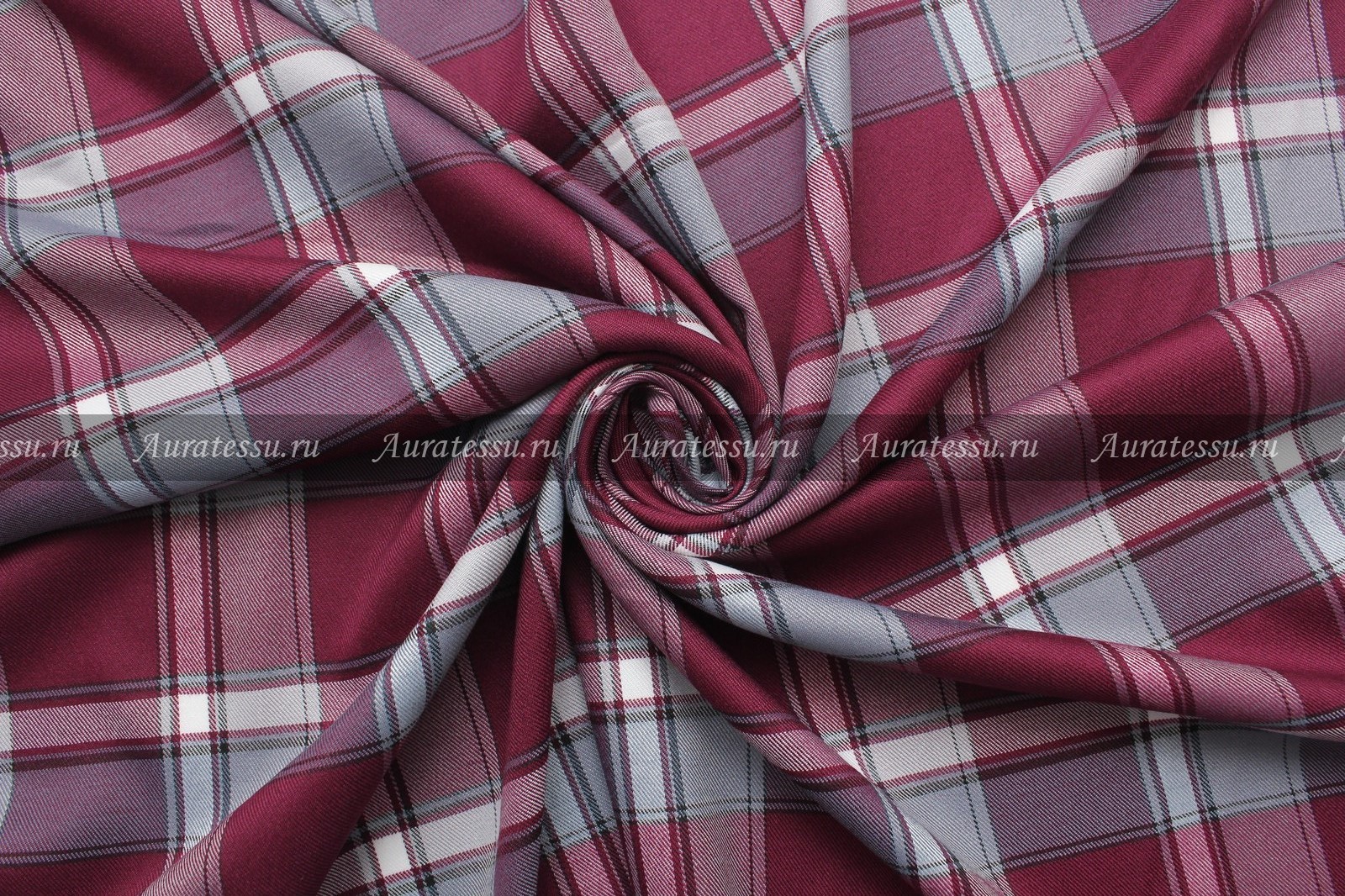 Ткань диагональ стрейч в клетку серо-вишнёвая