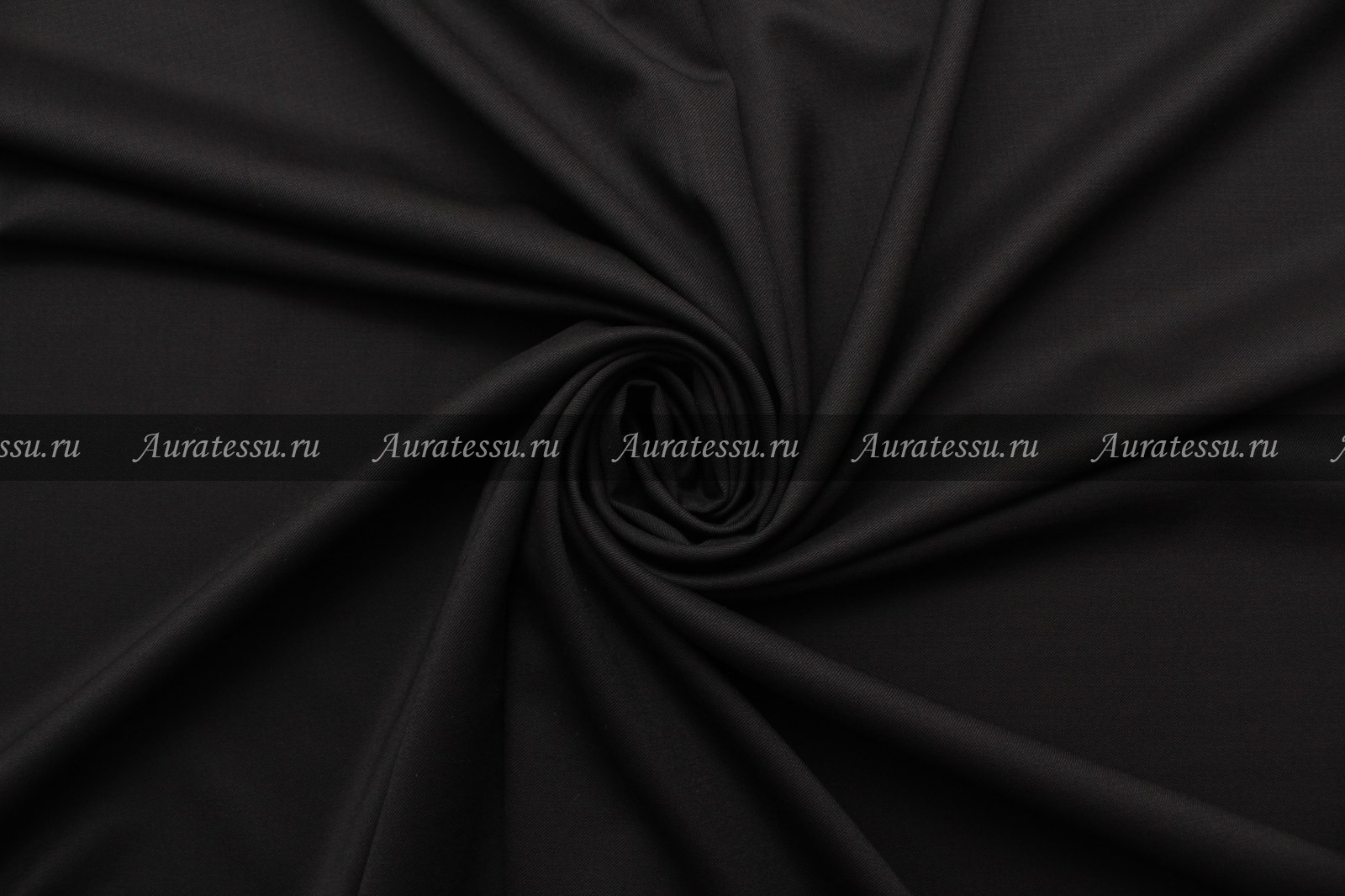 Средней плотности 260г/м шерстяная костюмная ткань, шлифованная, эластичная, чёрного цвета. Ткань упругая, пластичная, хорошо держит форму. Подходит для пошива костюмной одежды классических или зауженных силуэтов.