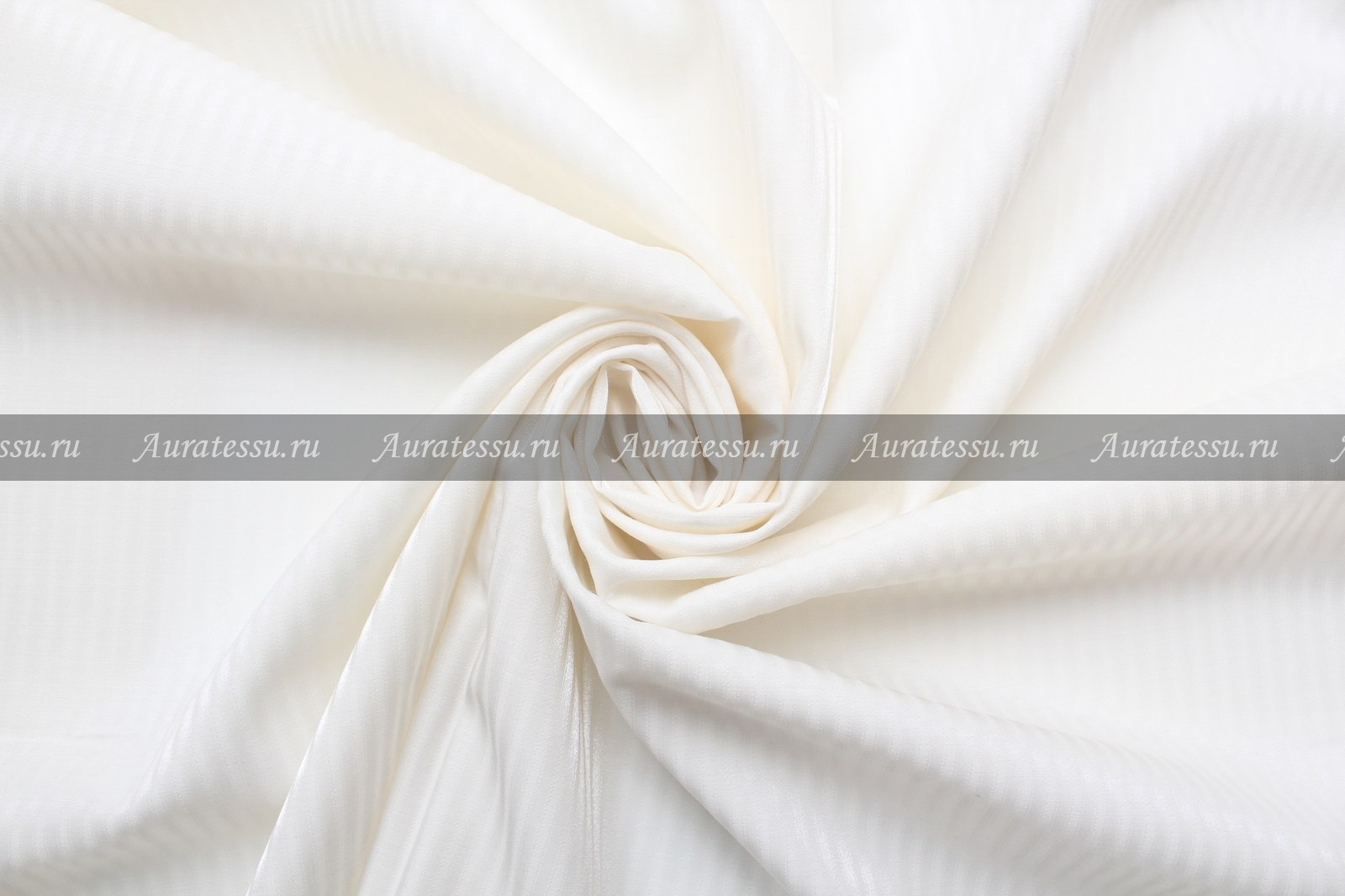 Средней плотности костюмная шерсть молочно белого цвета с жаккардовой продольной полоской. Рисунок полоски в сочетании матовой и атласной поверхности. Ширина полоски около 5 мм. ткань упругая, держит форму. Подходит для пошива костюмной одежды, отделок.