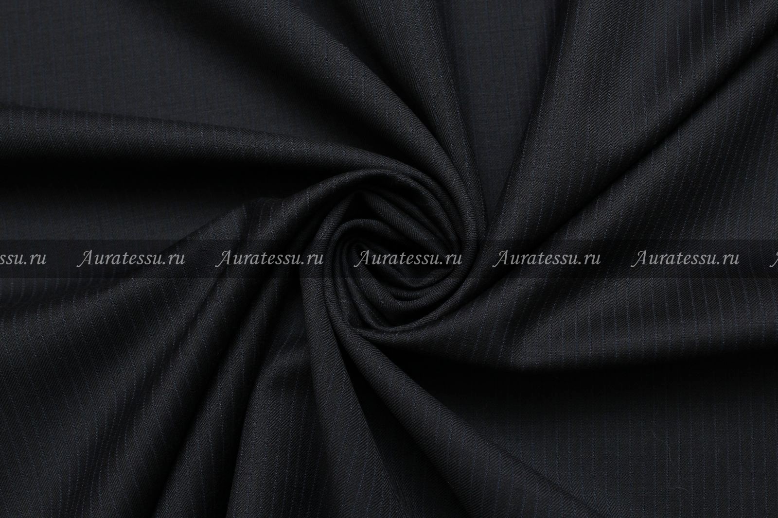 Ткань костюмная шерстяная тёмно-синяя в синюю полоску