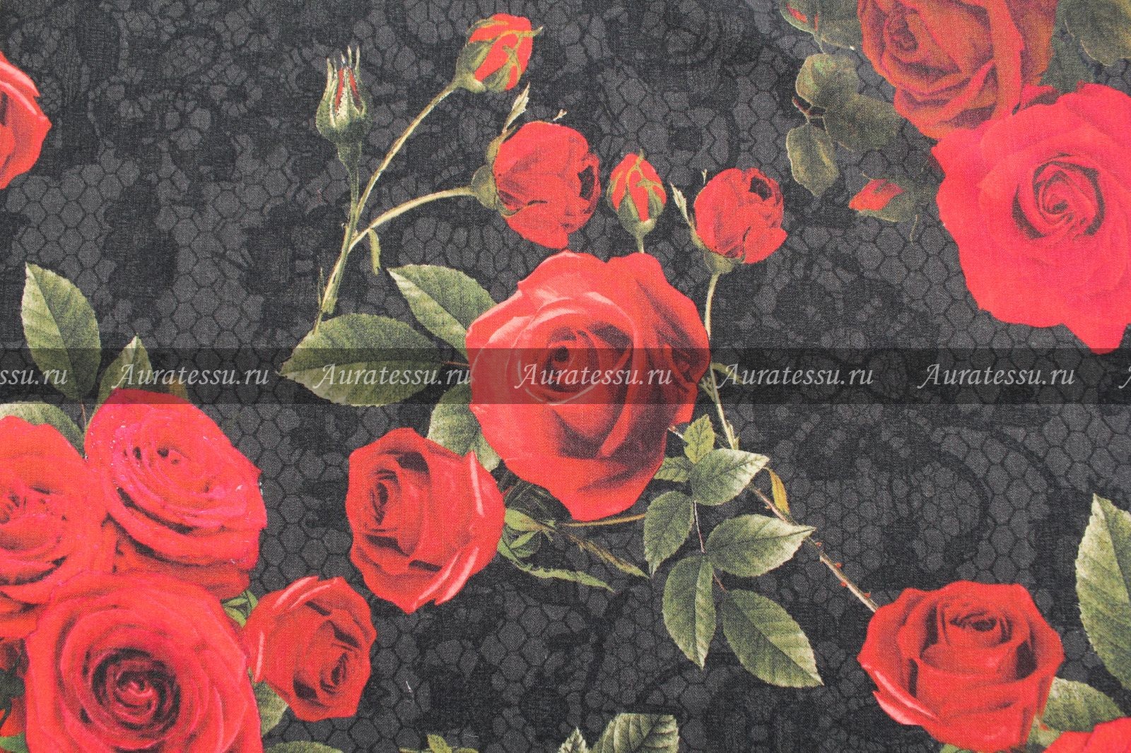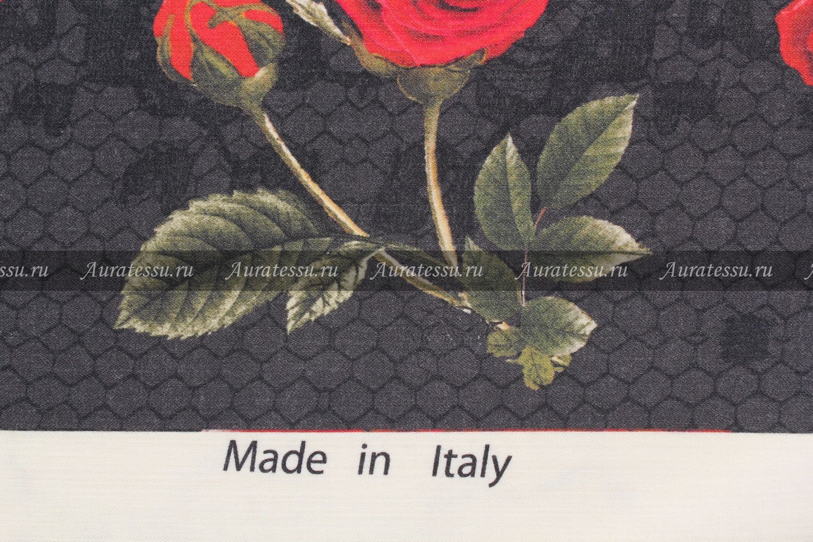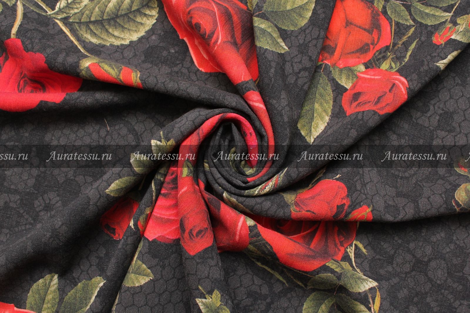 Шерсть стрейч Dolce&Gabbana красные розы на сером фоне
