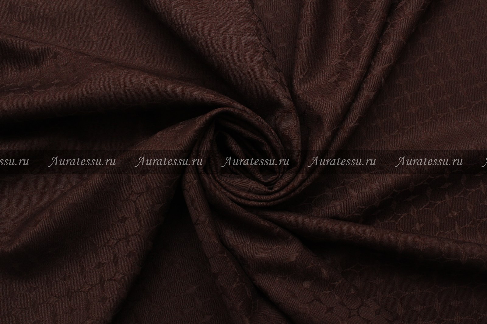 Средней плотности плательно- костюмный жаккард коричневого цвета. На ткани вытканный мелкий узор в виде цветочков. Рисунок выполнен в сочетании матовой и слегка глянцевой фактуры. Полотно пластичное, хорошо драпируется. Подходит для пошива плательной и костюмной одежды не узких силуэтов.