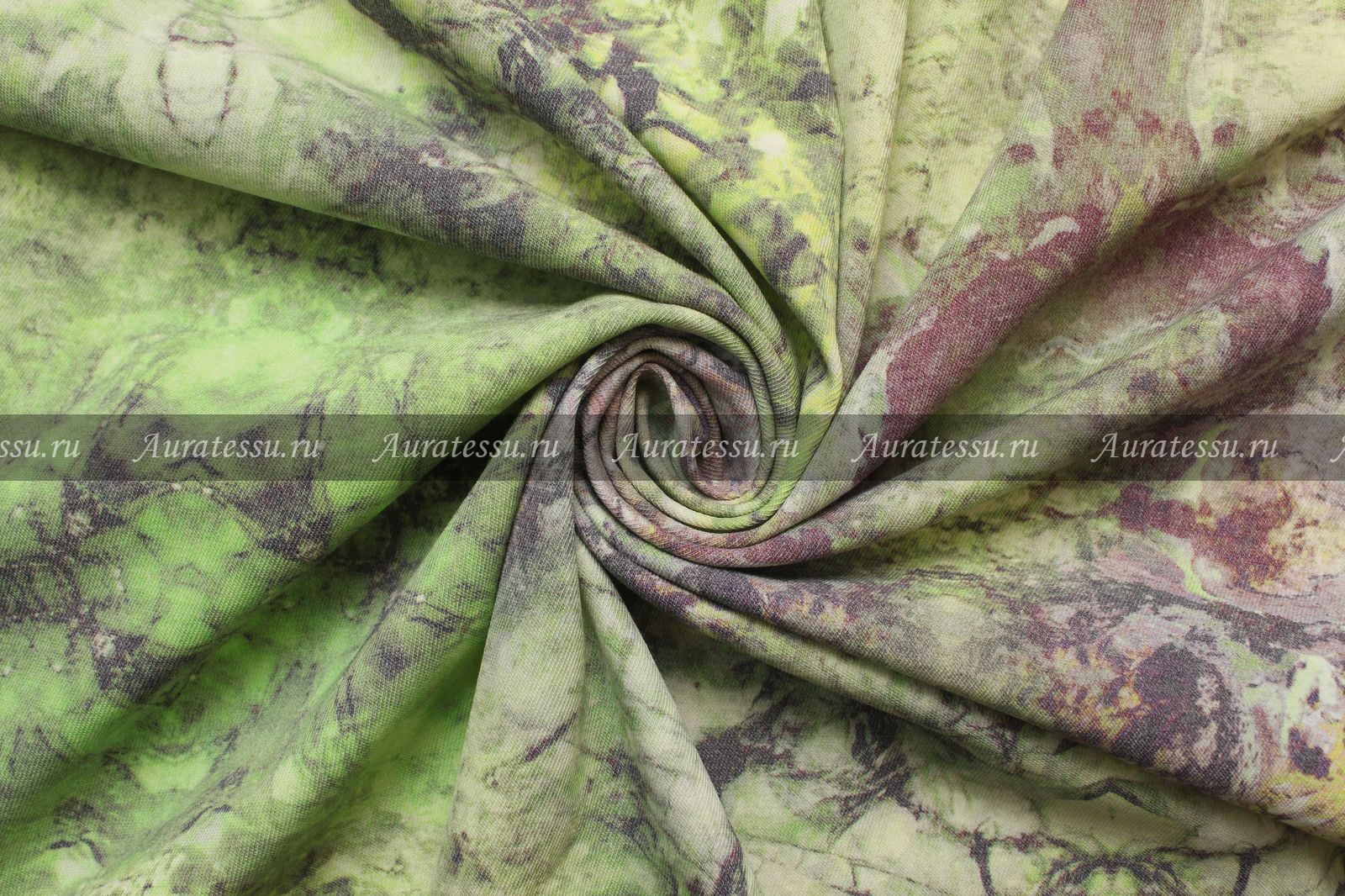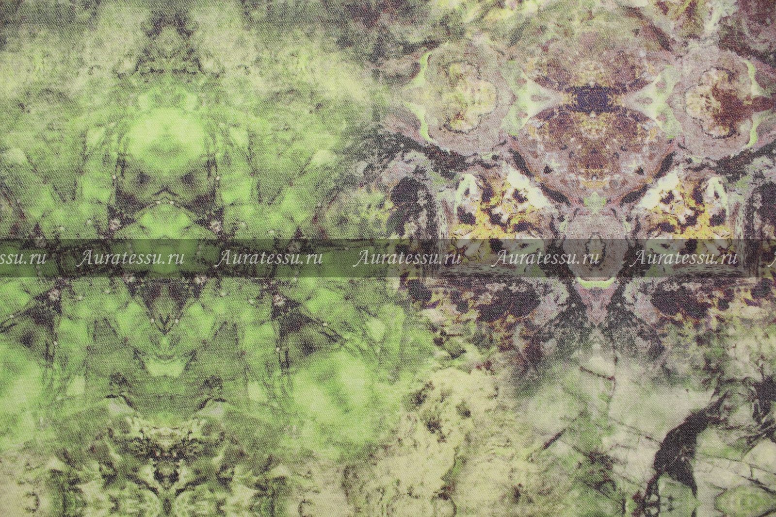 Шерсть-стрейч Marini с абстрактным зеркальным узором в фисташковом и лилово-сиреневом цветах