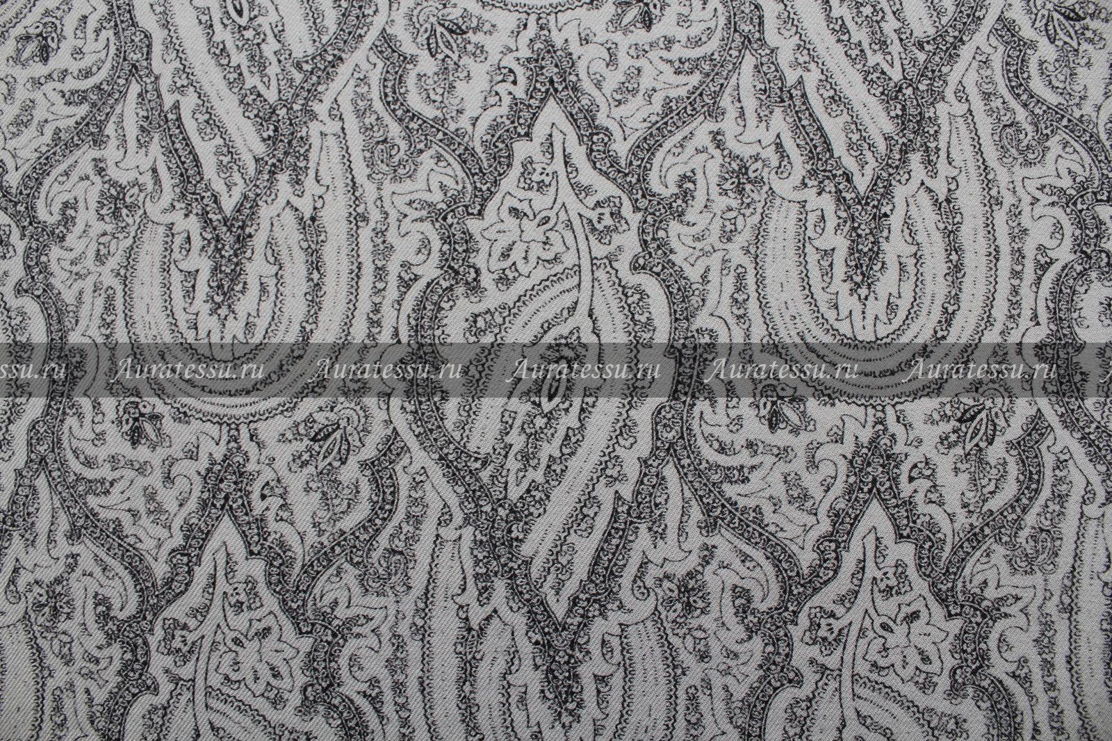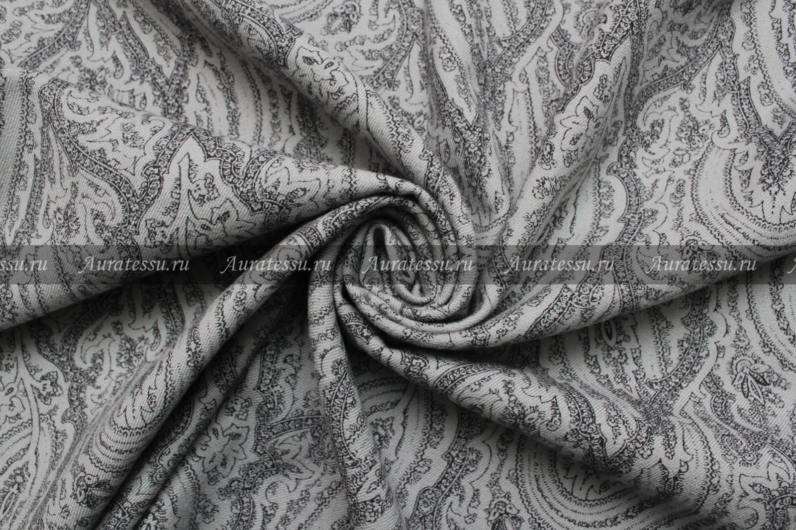 Шерсть-стрейч Etro чёрный узор пейсли на сером фоне
