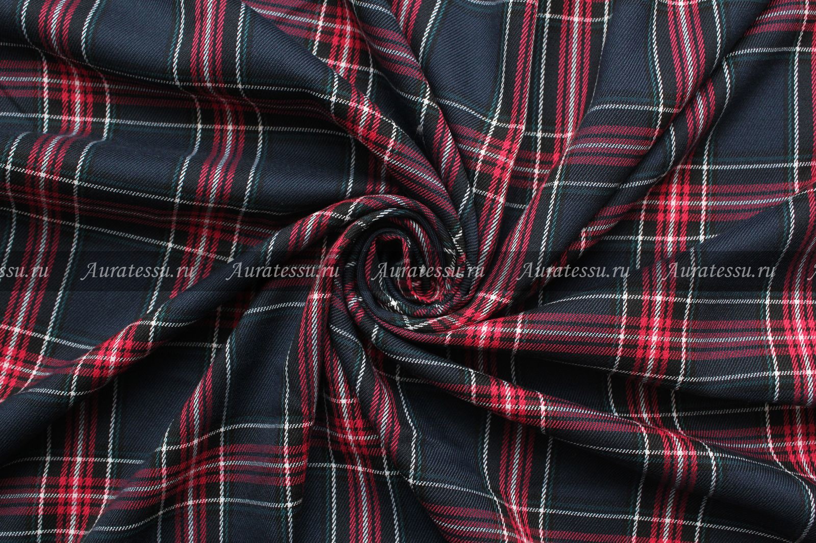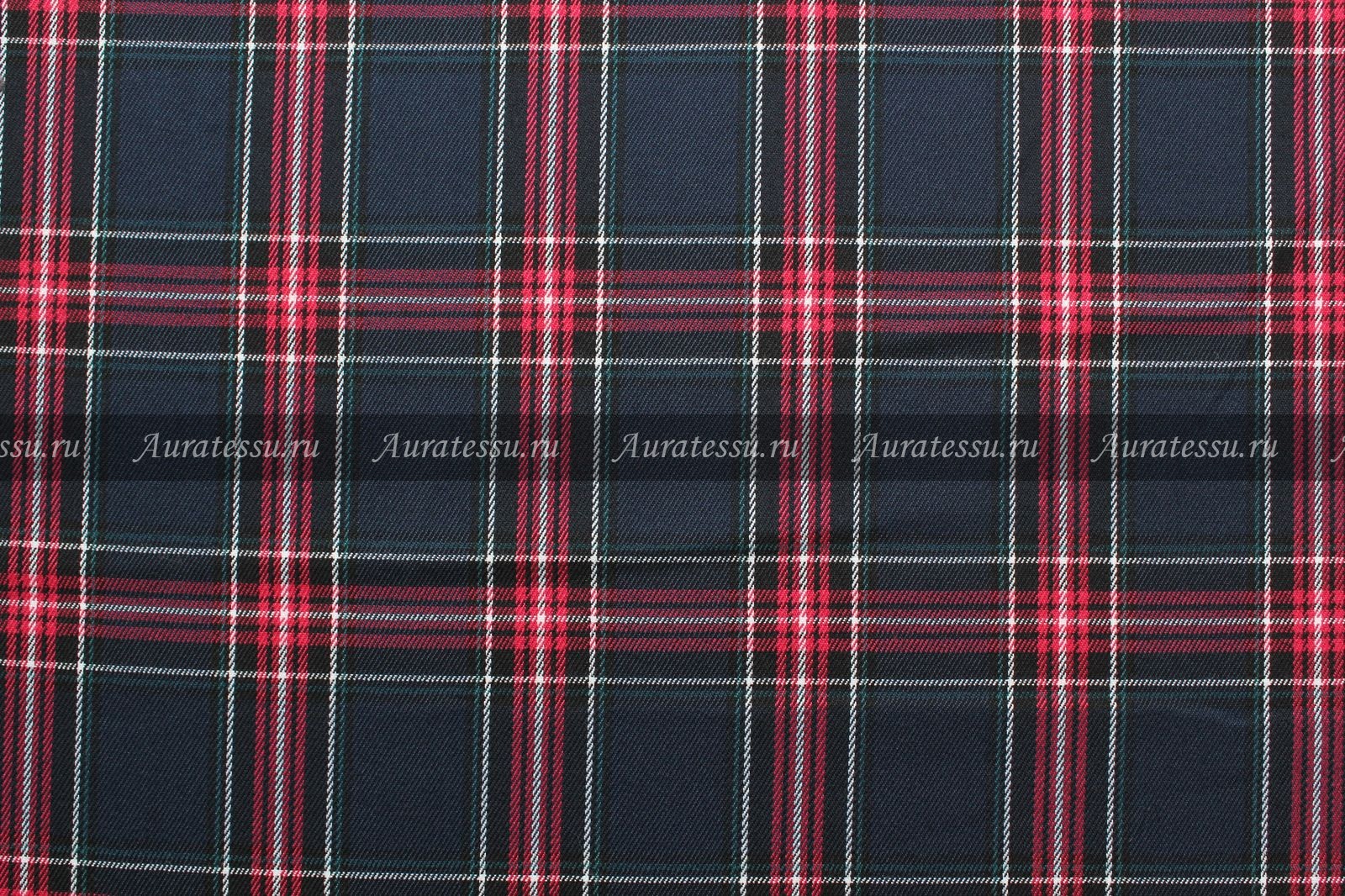 Ткань костюмная стрейч Check Flare малиновая, синяя, белая, чёрная клетка на тёмно-синем фоне