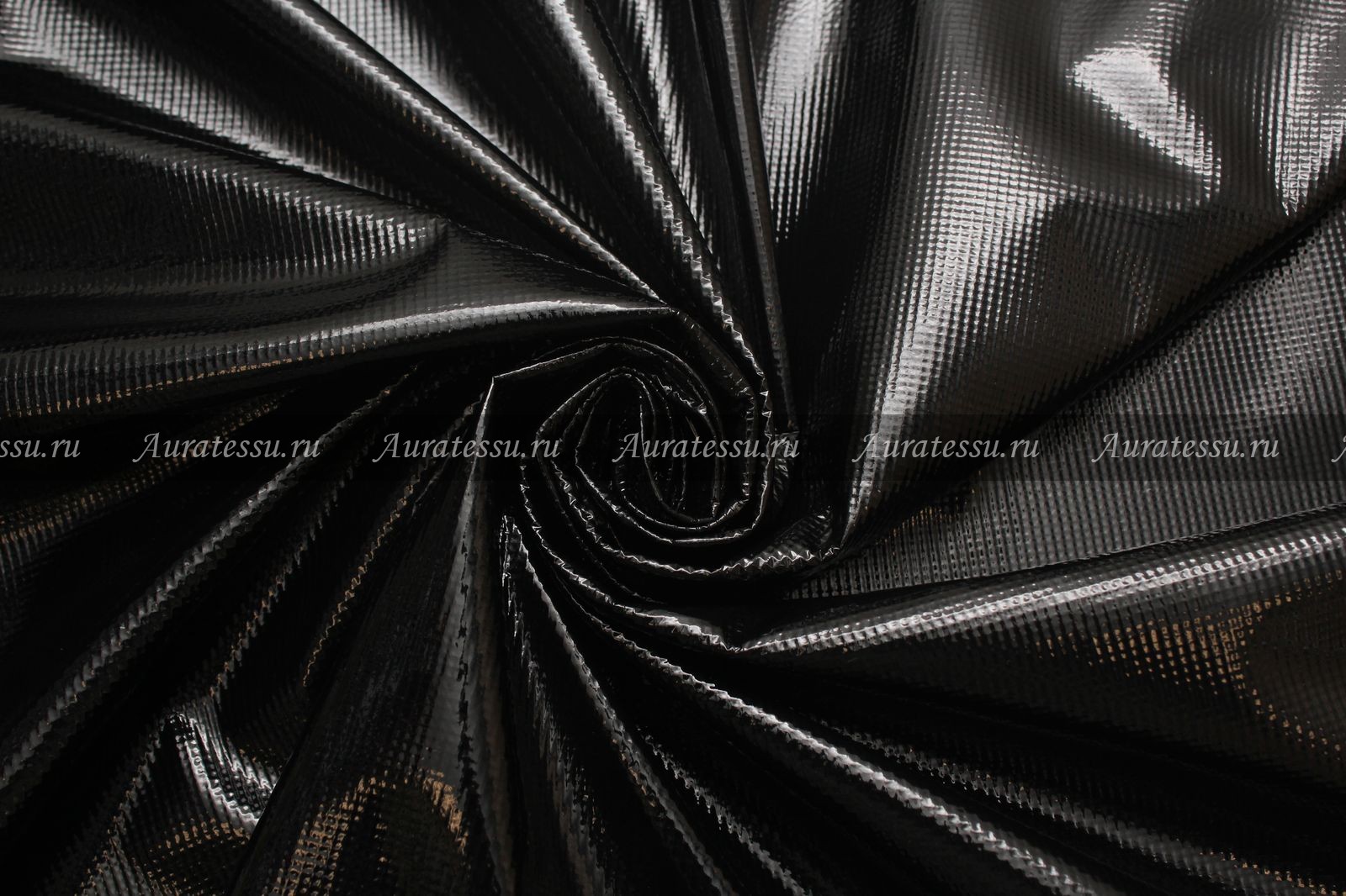 Кожа искусственная лаке чёрного цвета на белой рельефной сетчатой 310г/мп