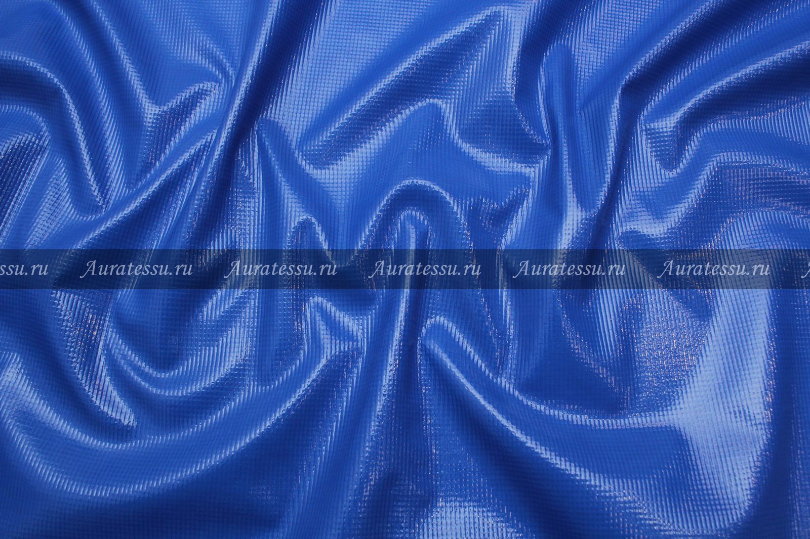 Кожа искусственная лаке синего цвета на белой рельефной сетчатой 310г/мп