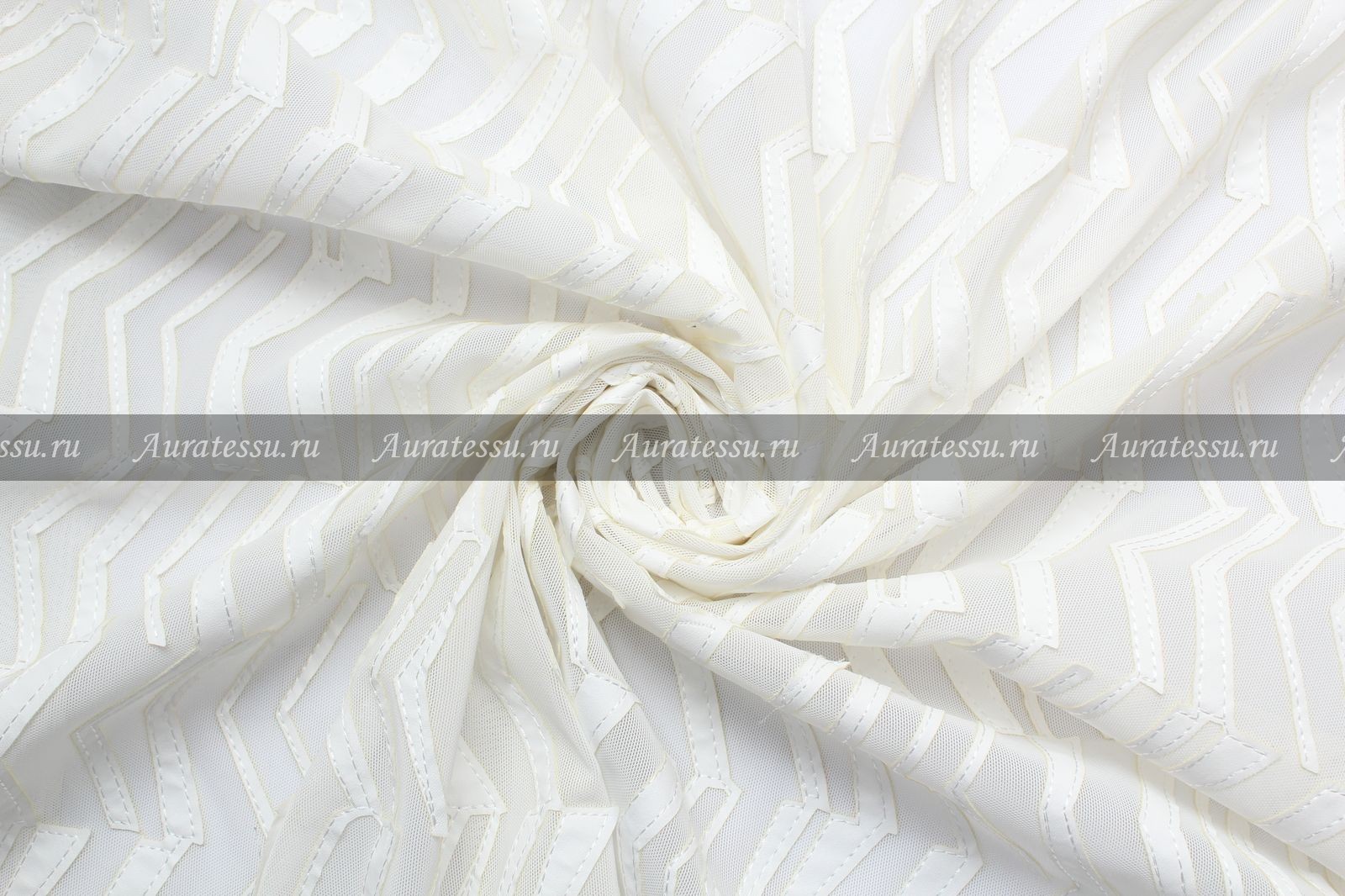 Кожа искусственная Cadena белого цвета с перфорированным настрочным геометрическим узором по сетке