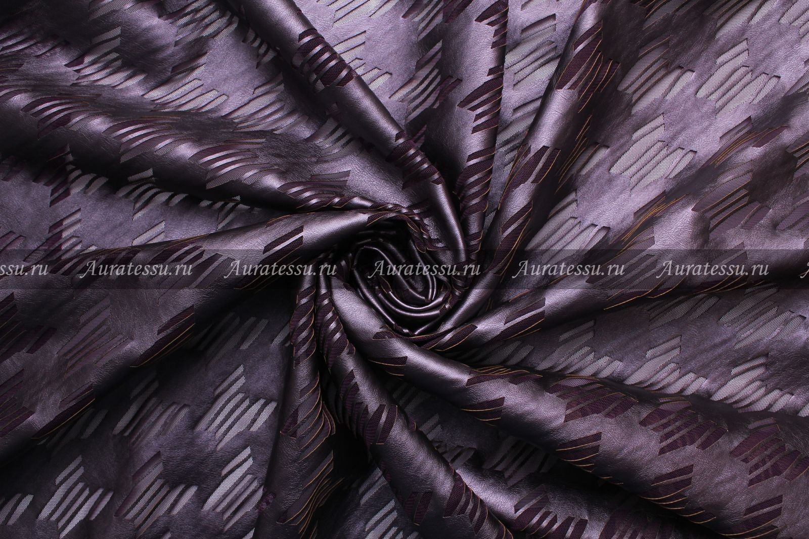Кожа искусственная Cadena фиолетового цвета на фиолетовой сетке с перфорированным узором ломаной клетки