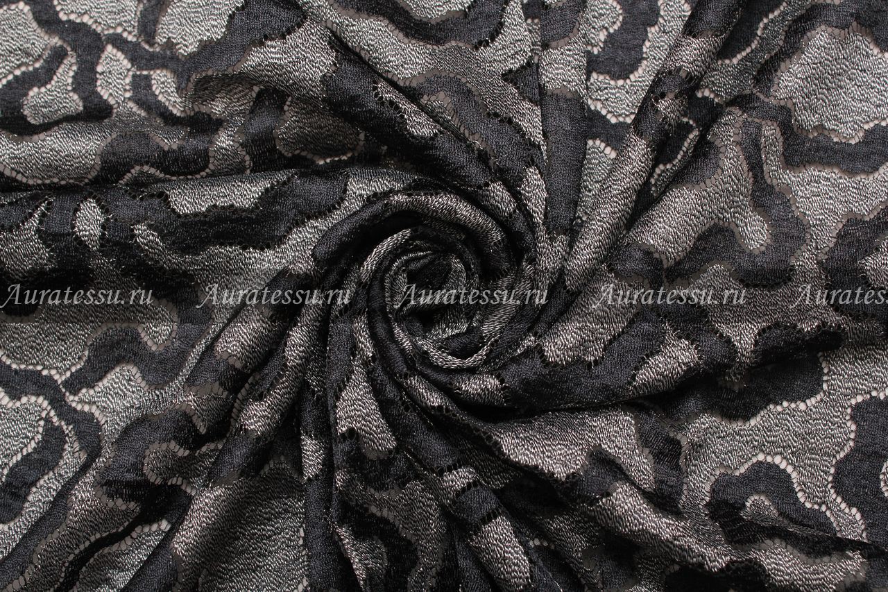 Кружево Solstiss серо-чёрное, плотное с фестоном