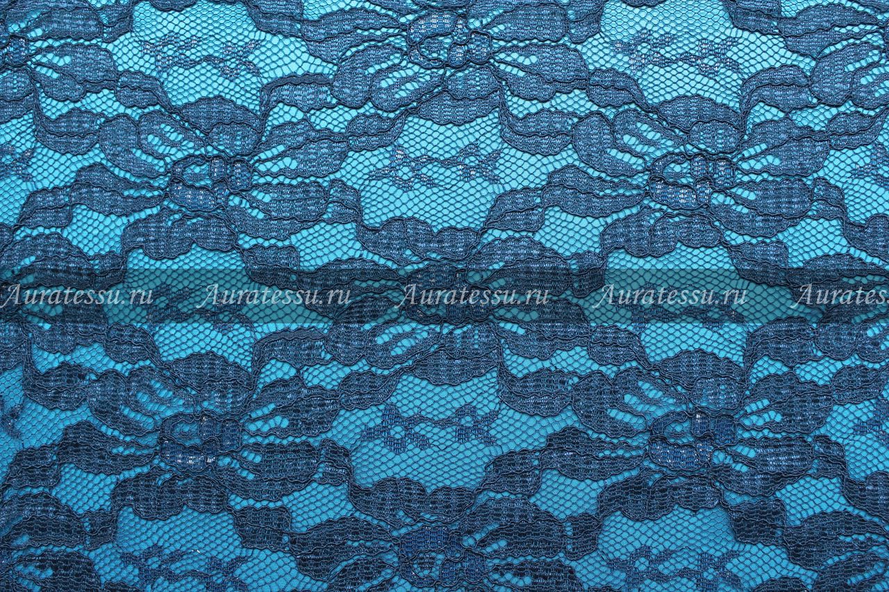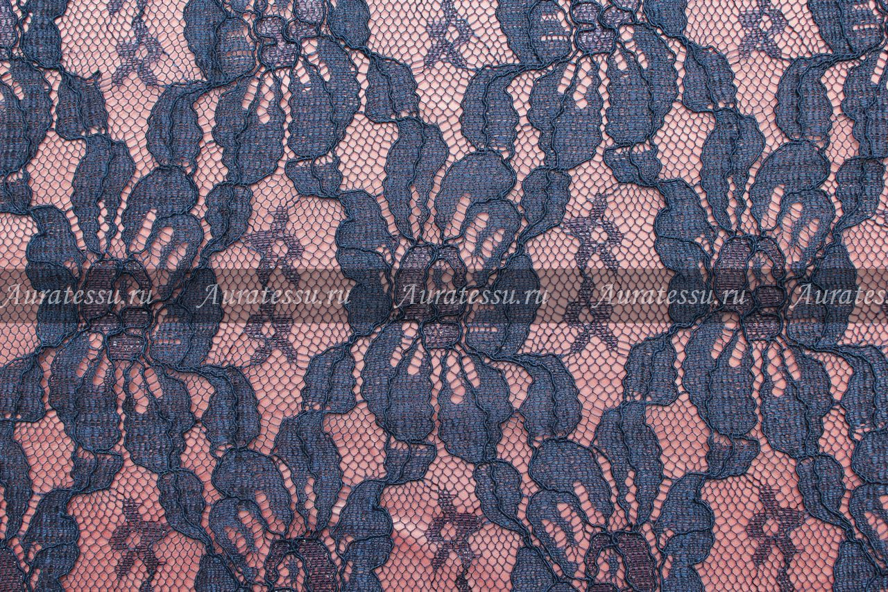 Кружево Cadena с кордовой вышивкой тёмно-синее