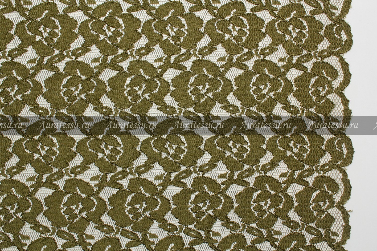 Кружевное полотно цвета хаки с кордом и волнистым фестоном