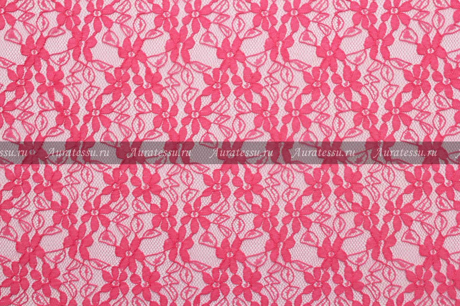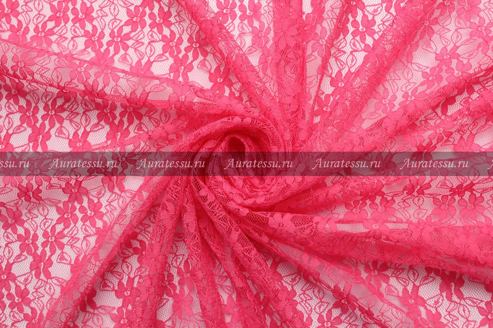 Кружево-стрейч кораллово-розовое с цветочным узором